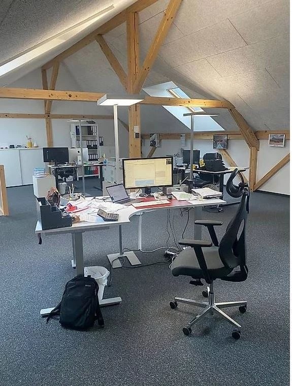 Situé au 1er étage, de l'ancien arsenal entièrement rénové en 2016, cette vaste surface de 106 m² en duplex (lot 24a) offre un espace idéal pour diverses activités professionnelles.