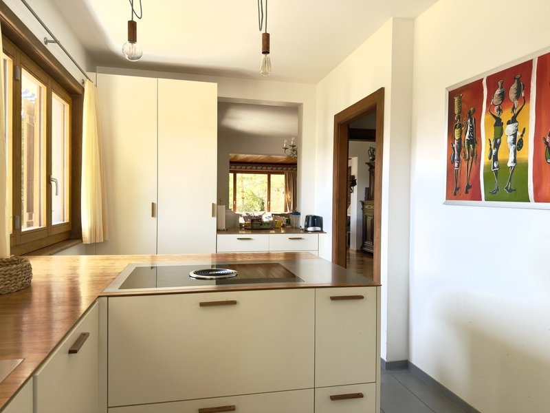 1 renovated kitchen open to living/dining room with 4 ceramic hobs, 1 oven, 1 large fridge, 1 dishwasher and 1 microwave oven