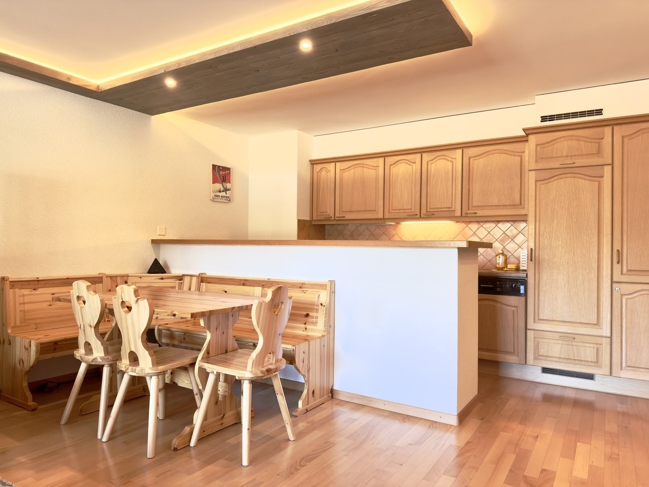 This property is perfect for winter sports enthusiasts, as well as summer golf enthusiasts. It is also a perfect option for family vacations, thanks to an additional double bed installed in the living room, allowing several people to be accommodated comfortably.