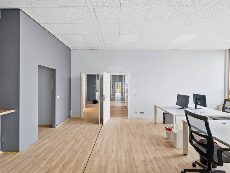 La surface bénéficie de plusieurs grands bureaux baignés de lumière naturelle grâce à de grandes baies vitrées. Les espaces sont modulables et permettent une organisation flexible : open-space, bureaux individuels, salles de réunion ou espace détente.