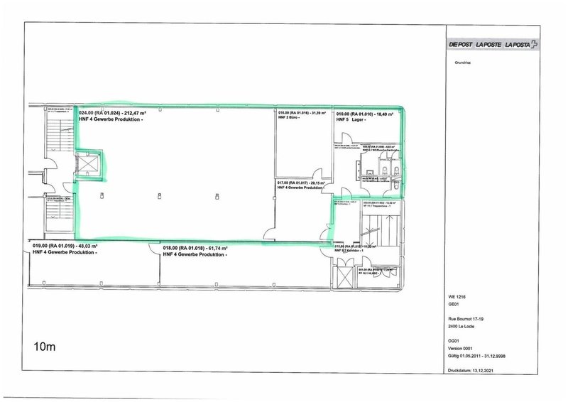Idéalement située, surface administrative / atelier d'env. 290 m² à louer au 1er étage dans le bâtiment postal.