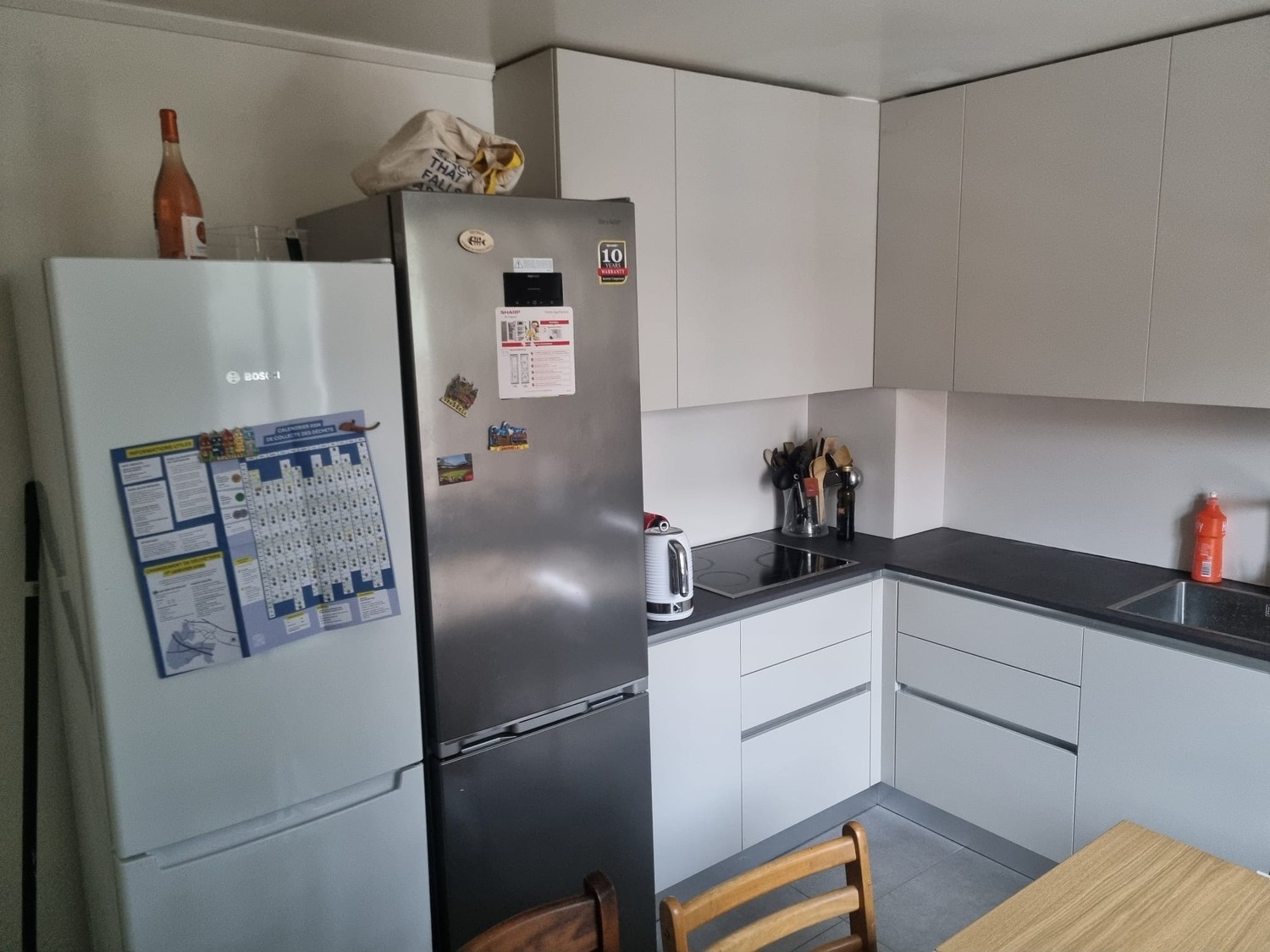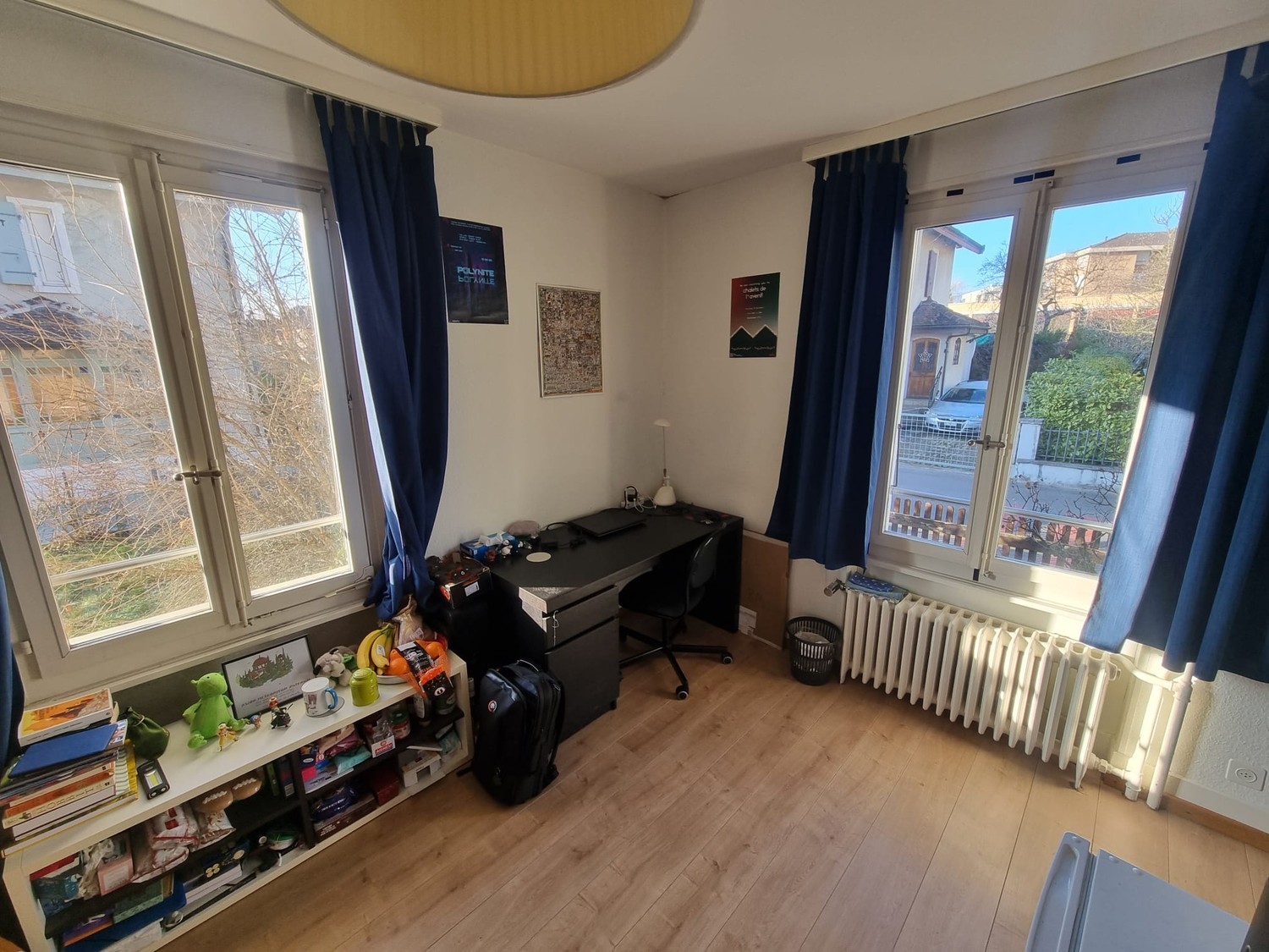 Chambre de 17m² lumineuse (double fenêtre) avec douche et lavabo dans une maison de 3 étages avec jardin, cuisine, salon et buanderie commune, partagée avec 8 autres personnes (3 personnes par étage).