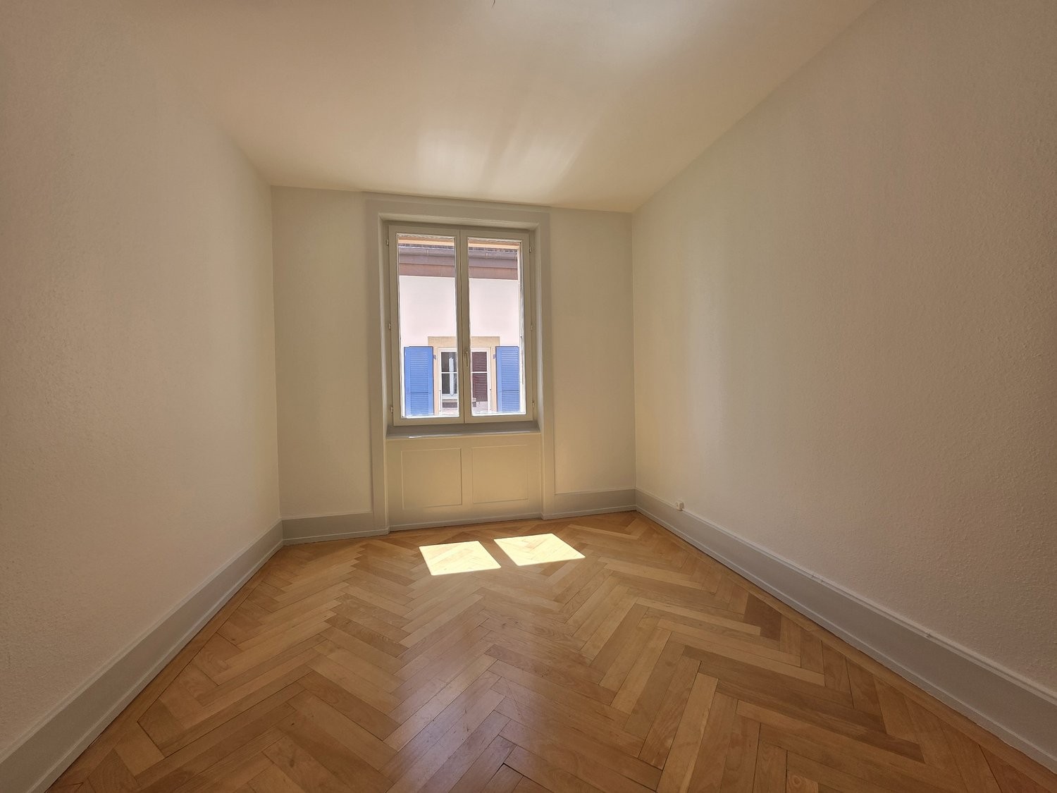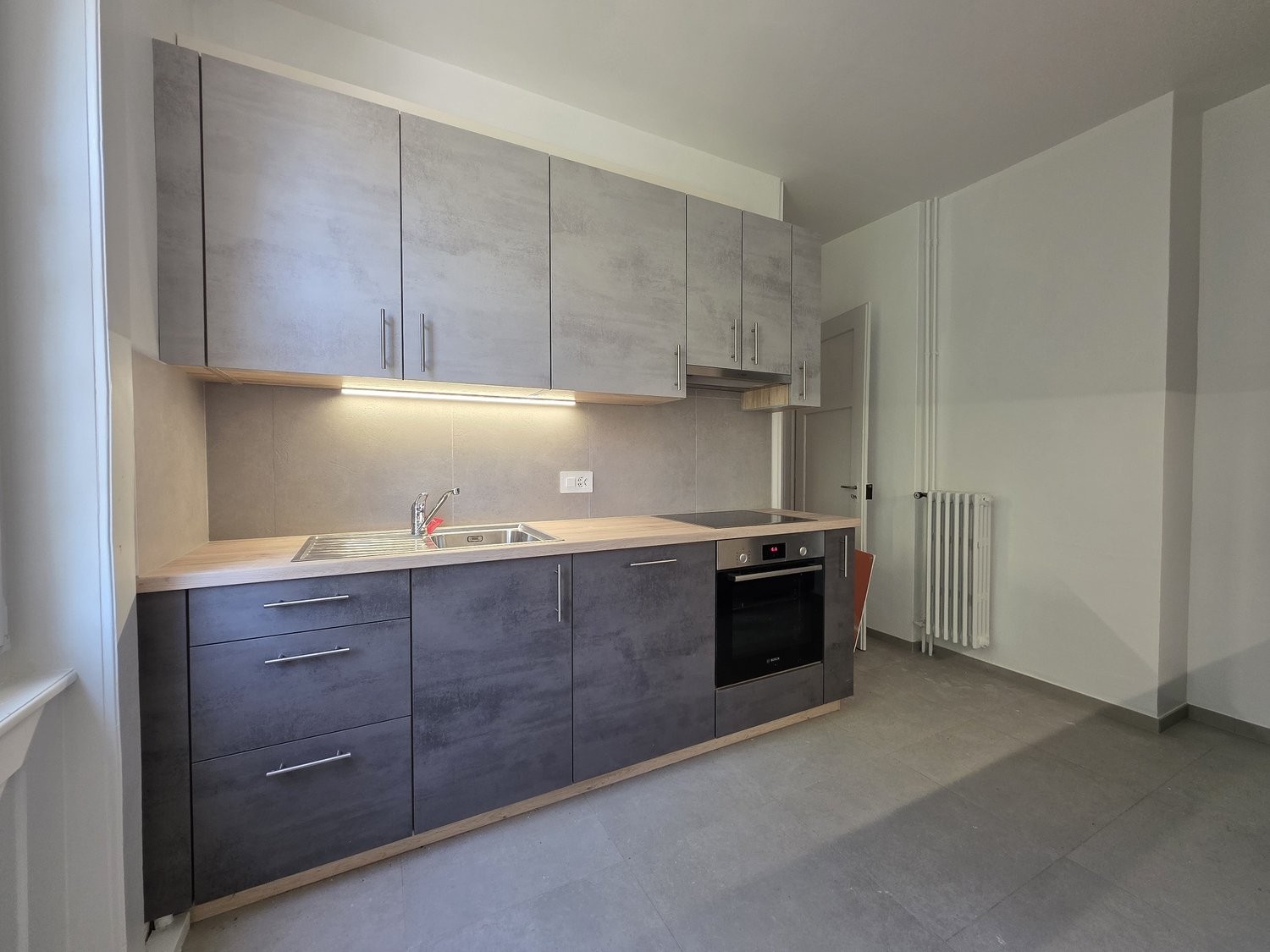 Il comprend une cuisine neuve, un hall avec rangements intégrés, une salle de bains avec WC, un séjour spacieux et lumineux avec balcon, ainsi que des chambres avec parquet.
