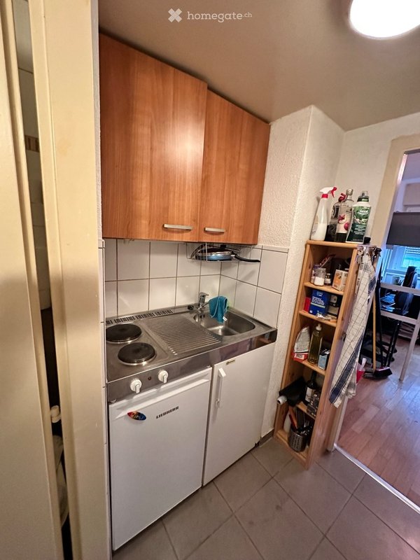 Le studio fait 20 m², se trouve au 1er étage, et le loyer est de 1?070 CHF, chauffage et eau chaude compris.