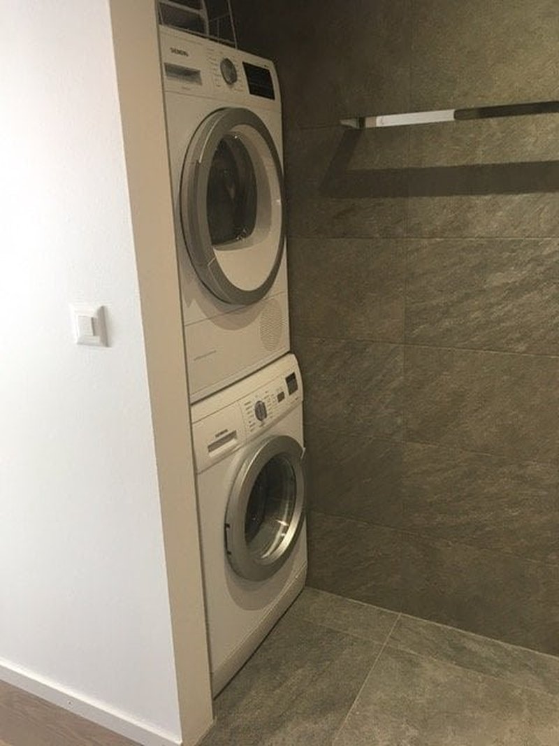 Appartement de 43,5 m² comprenant une spacieuse suite avec de nombreux rangements intégrés (pas de cave), donnant sur une salle de bains moderne avec buanderie intégrée (lave-linge et sèche-linge).