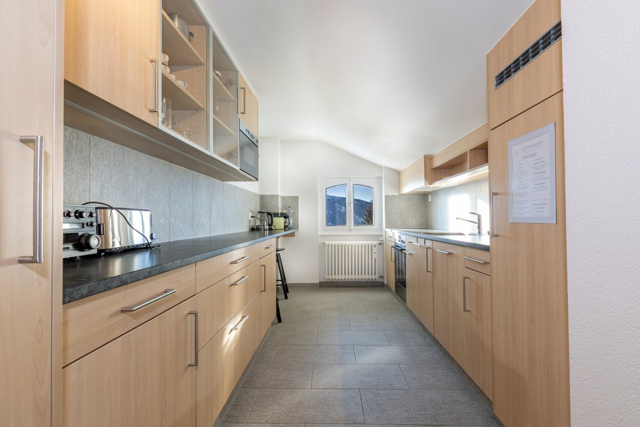 1 cucina esposta a sud con lavastoviglie, frigorifero, piccolo congelatore, forno, microonde, 4 piastre in vetroceramica, macchina da caffè Koënig