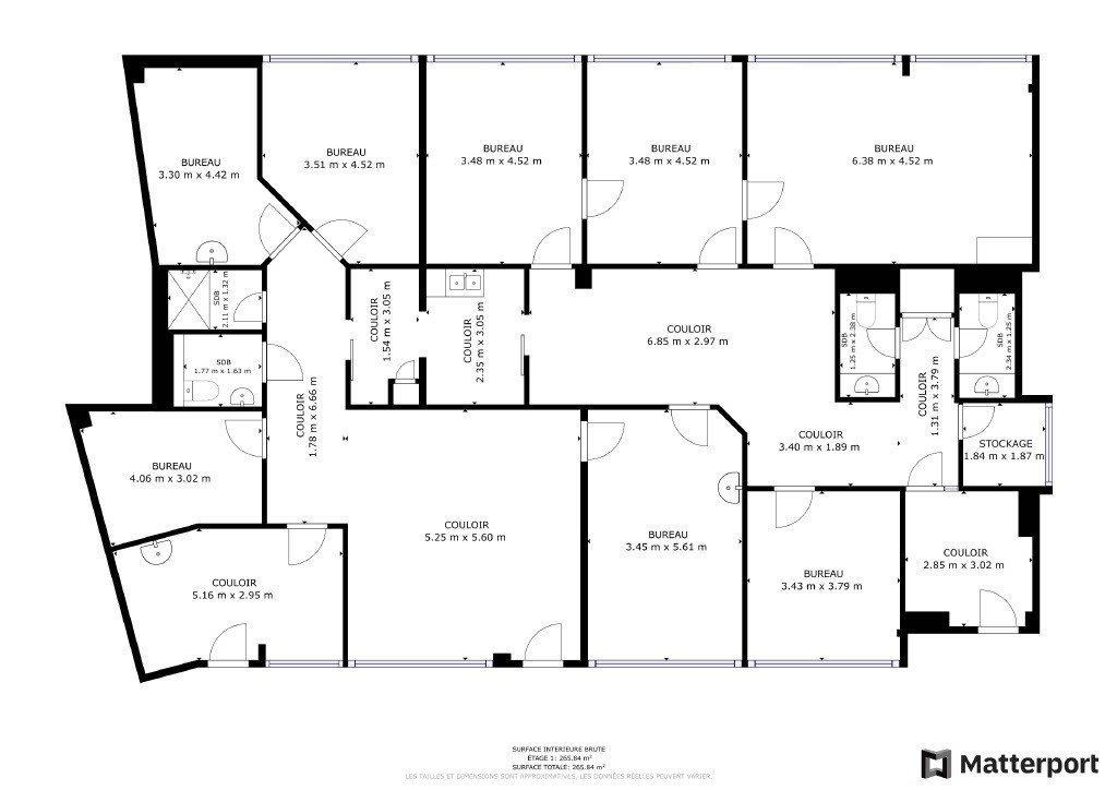 Les surfaces sont brutes et l'aménagement est au gré du preneur.