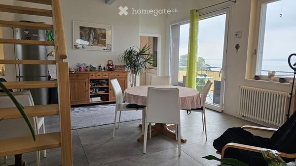 Magnifique attique de 3,5 pièces, très lumineux, poutres apparentes, mezzanine habitable à l'étage, vue imprenable sur le lac de Neuchâtel. 1 grande chambre, 1 cuisine équipée, 1 salle de bain/douche, 1 grand salon et 1 grande salle à manger. Parfait pour un couple ou personne seule. 2 places de parc incluses, 1 énorme cave, 1 buanderie privée. Le charme d'une vieille maison toute rénovée. 1 balcon pour admirer la vue et recevoir en été. Libre dès le 1er décembre. Une belle opportunité à saisir.
