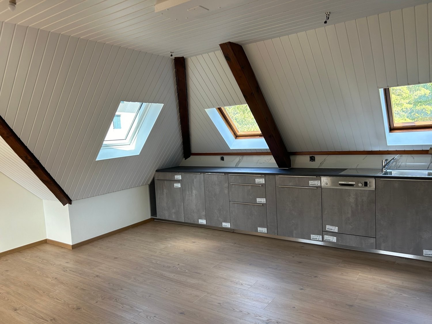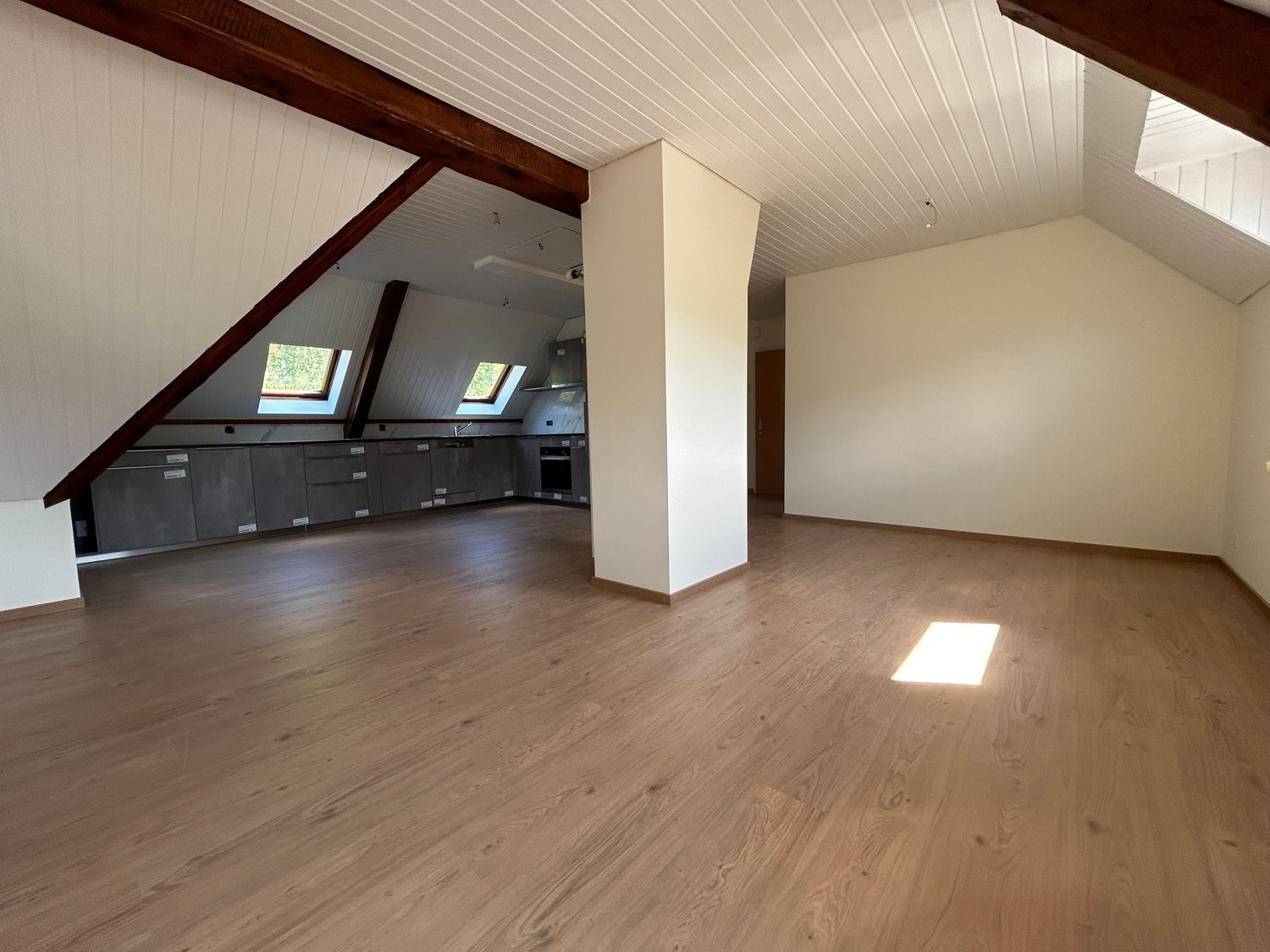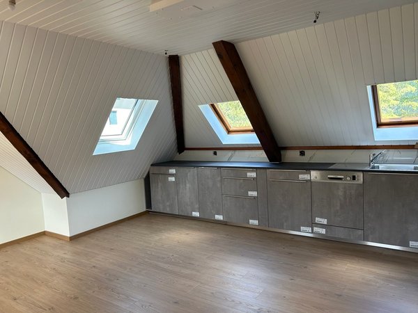 Appartement de 3.5 pièces au 3ème étage, d'une surface approximative de 65 m2, comprenant une cuisine agencée ouverte sur le séjour, deux chambres et une salle de bain avec baignoire/wc.