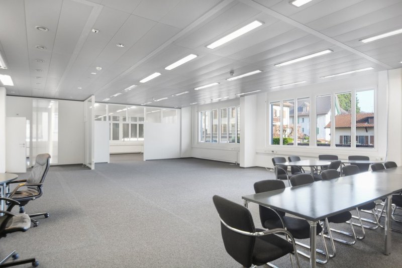 Située dans une zone calme, cette surface lumineuse et modulable 378m2 est proche des autoroutes.