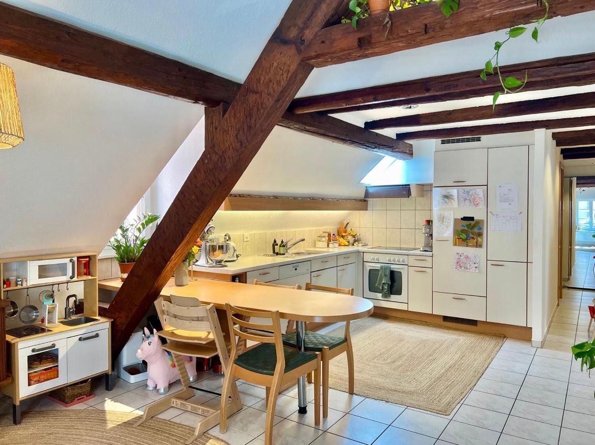 À louer, appartement de 3 pièces situé au dernier étage (2ème étage) d'un petit immeuble au centre de Lausanne.