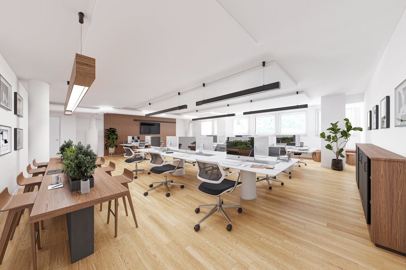 - Aménagements flexibles (open space ou bureaux individuels)