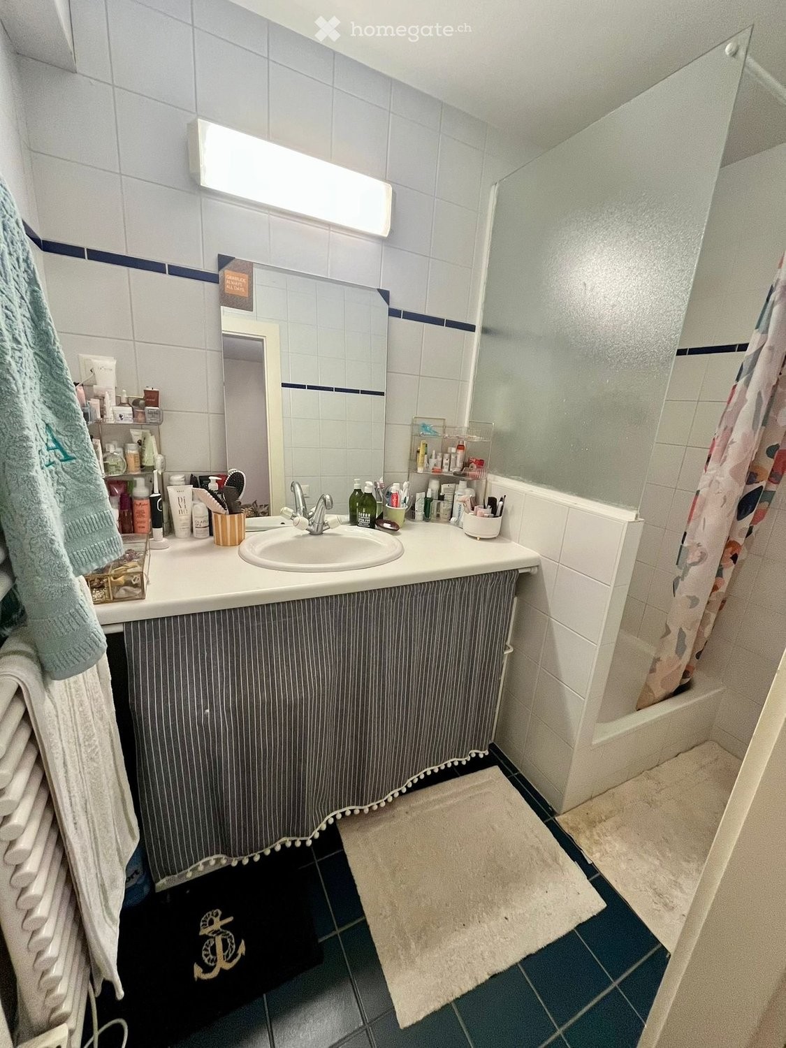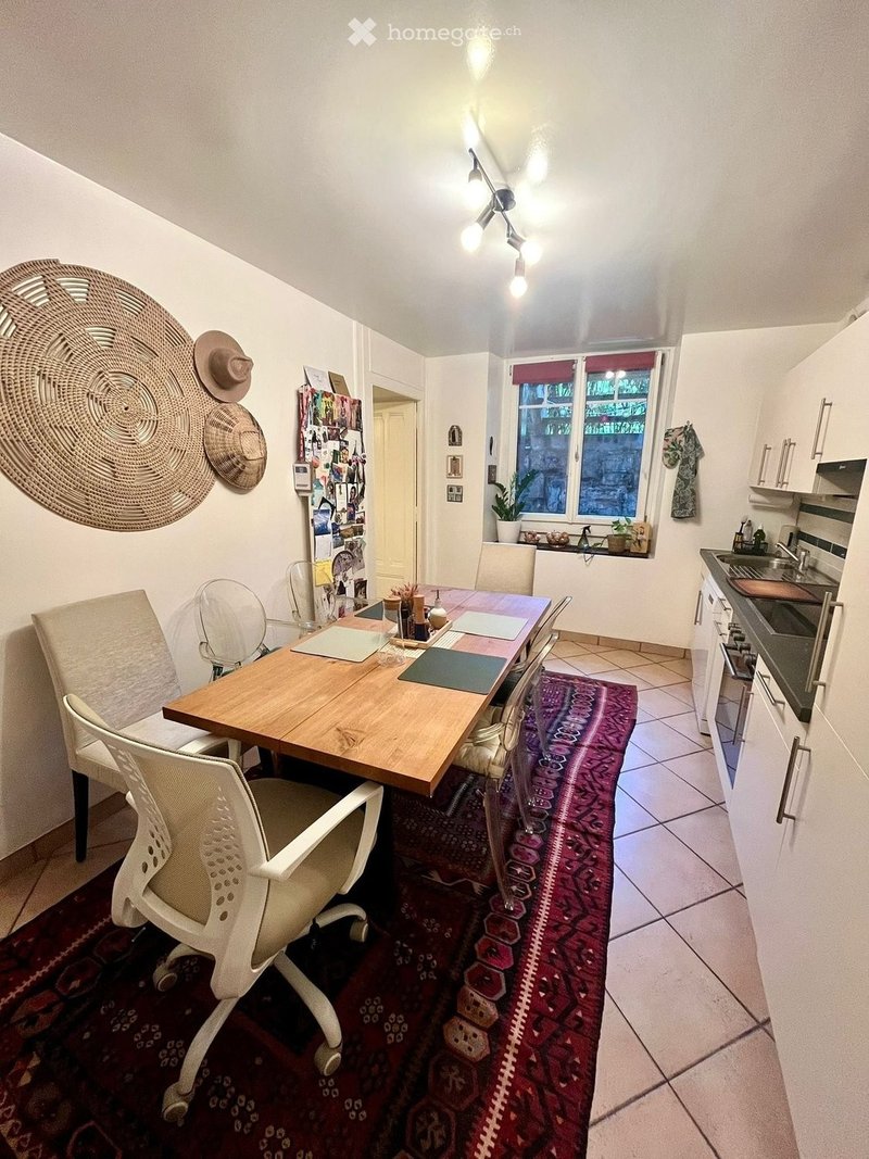 L'appartement est entièrement meublé, le loyer est de 2 400 CHF par mois, charges comprises (eau, électricité, internet fibre, chauffage, etc.). Il y a également un espace pour garer les vélos à l'intérieur du bâtiment.