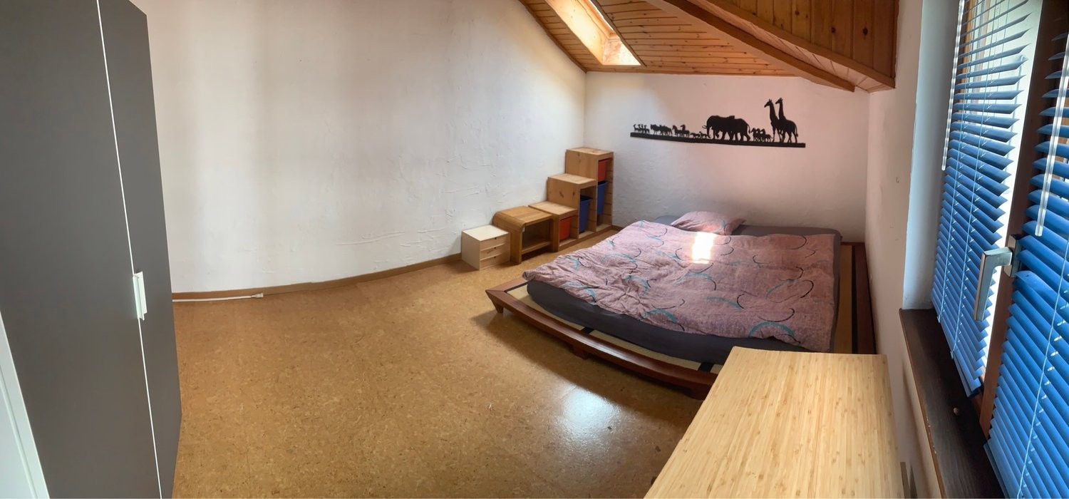 Dans une grande villa calme et verdoyante, je propose à la location une chambre meublée de 14 m² (env. 460 x 310 cm), située au 2eme étage (sur trois chambres à cet étage), composée de : un lit futon 180x200 cm, grande armoire, table de nuit, étagères