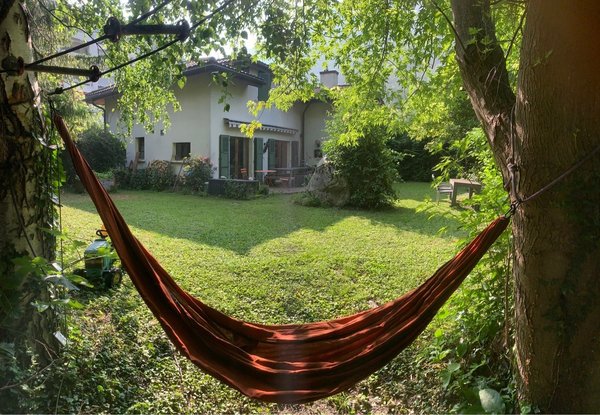 · Grand jardin arboré avec terrasse, hamac, espace repas extérieur agréable en été
