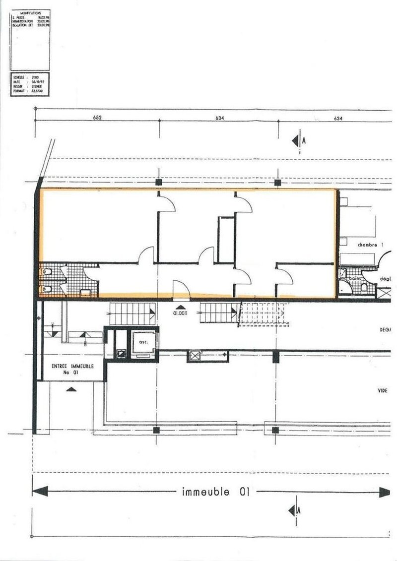 En effet, elle se compose dun hall d'entrée qui dessert trois bureaux communicants, quil est également possible de fermer, pour permettre confidentialité et tranquillité aux employés. De plus, deux bureaux sont équipés d'armoires murales. Des WC double ainsi qu'un local rangement viennent compléter ce bien.