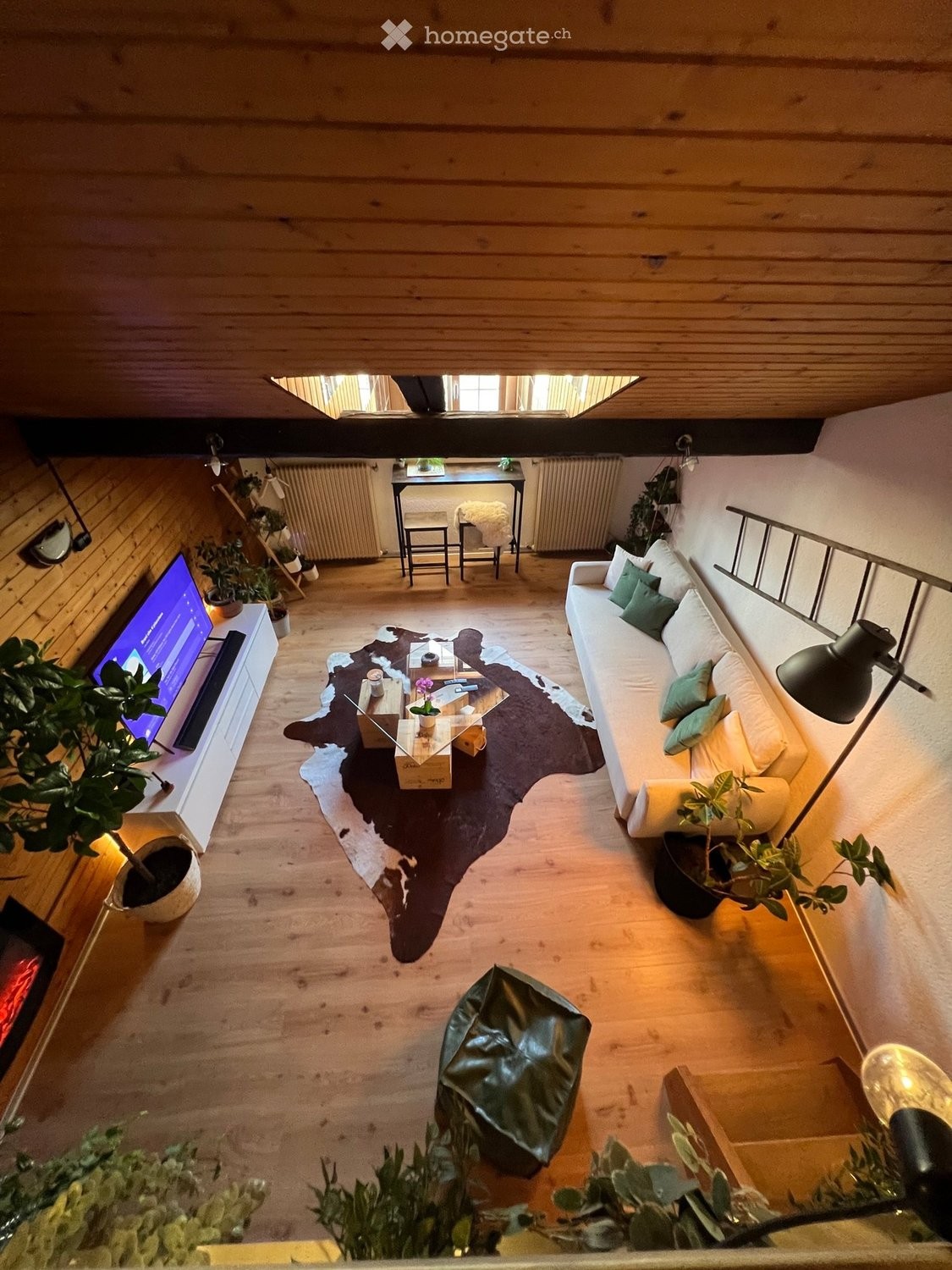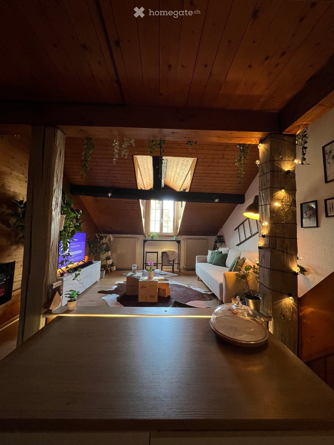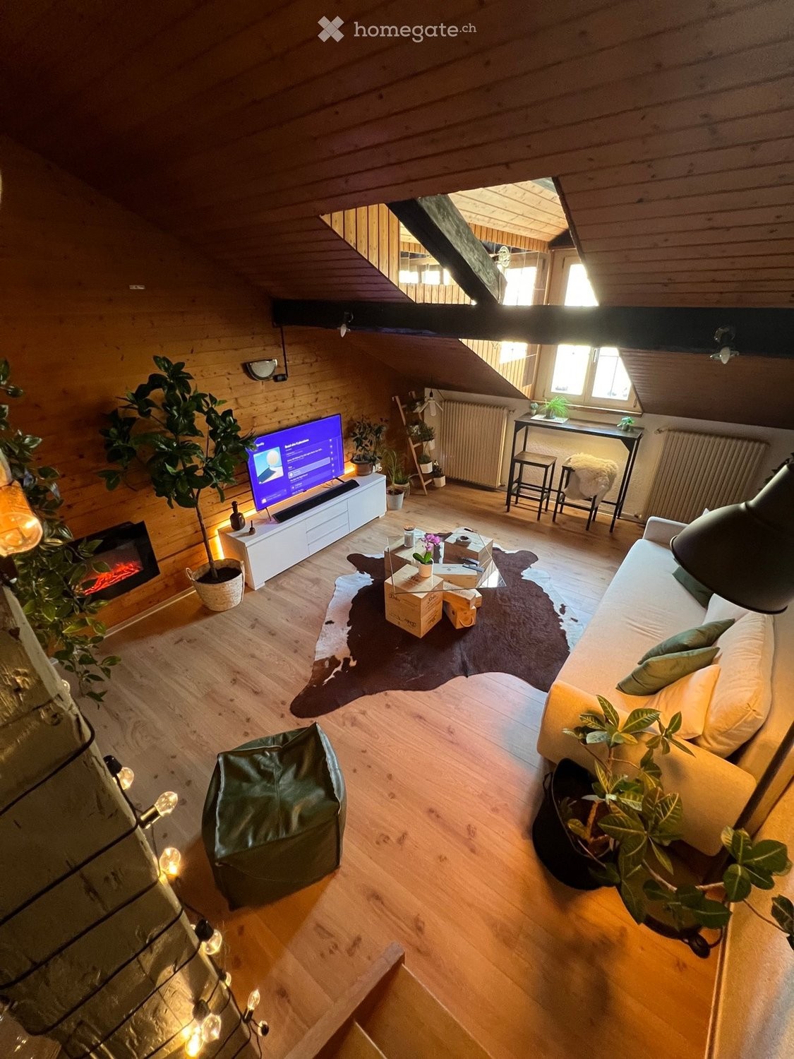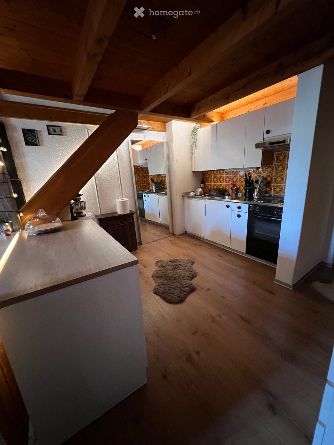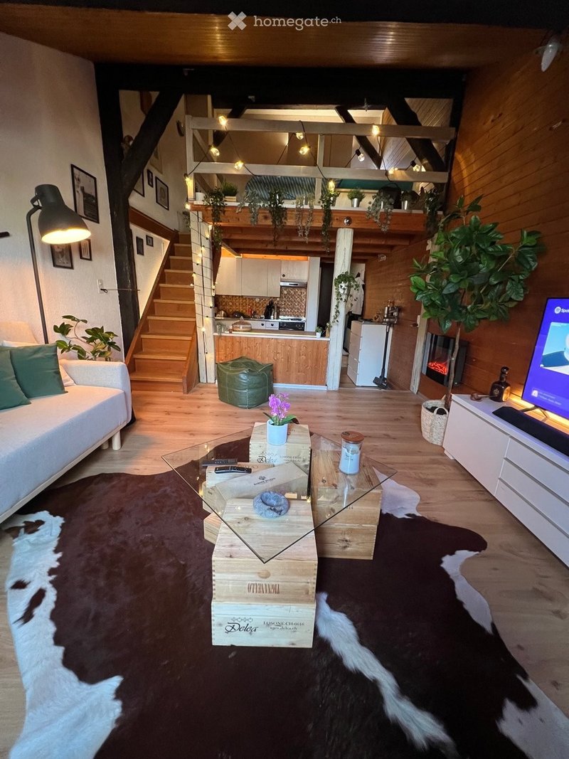 Charmant appartement sous les toits, unique en son genre. Ce duplex de 1,5 pièce offre un grand séjour lumineux avec poutres apparentes et cheminée, une cuisine ouverte équipée, ainsi quune salle de bain assez spacieuse. La chambre à coucher se trouve sur la mezzanine, offrant un espace cosy et bien optimisé. Les sols en imitation parquet renforcent le style rustique et chaleureux du logement.