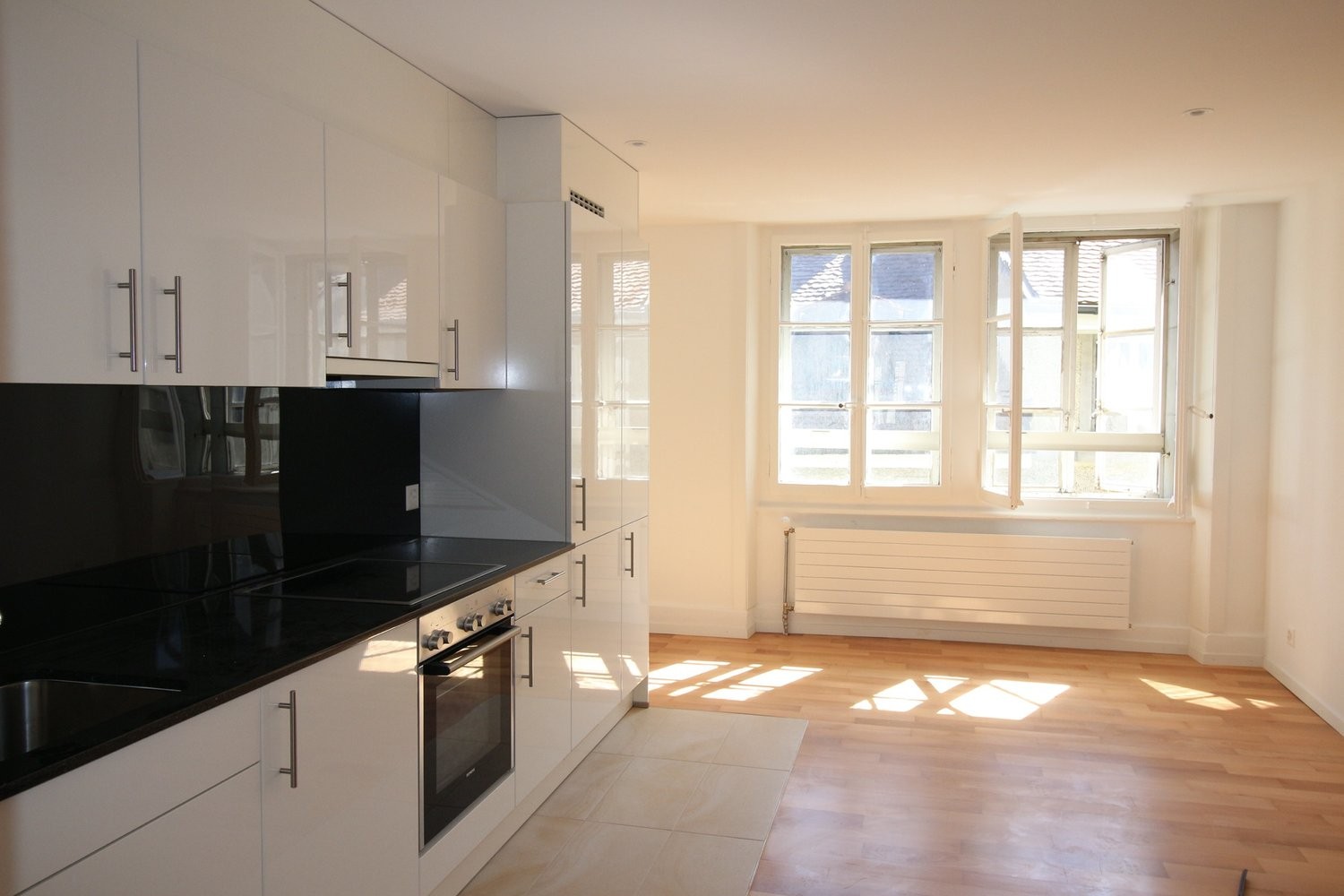 BEAU 2,5 pièces rénové, cuisine moderne, vitro-céram, lave-vaisselle, salle de douche/WC, lave-sèche-linge. Parquet dans les pièces.