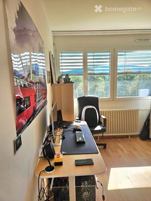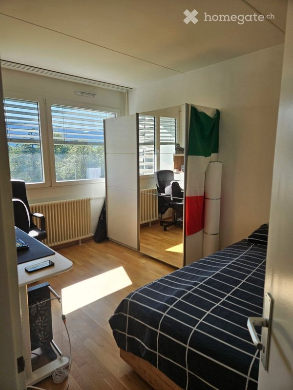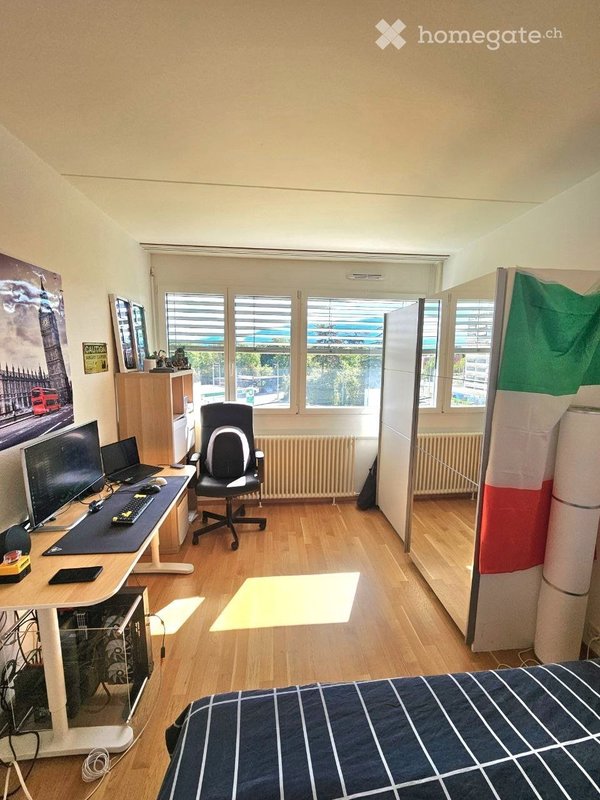 Nous proposons une chambre de 12 m² à louer pour 1?100 CHF/mois pour le 1er janvier 2026 (+ environ 75 CHF de charges pour eau et électricité). Il s?agit d?une sous-location officielle dans un appartement de 62 m², avec possibilité de reprise de bail à partir du 1er avril 2026.