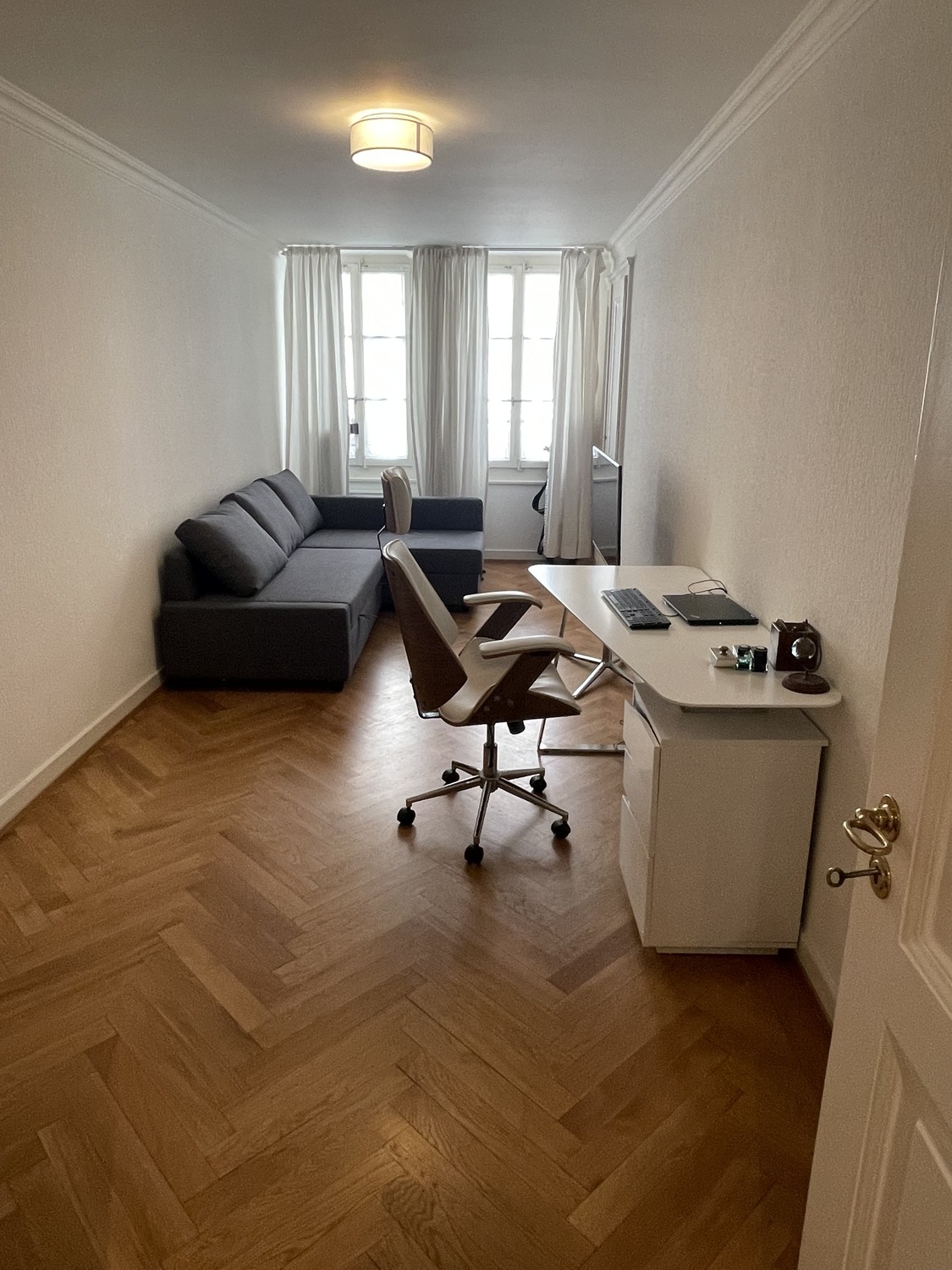 Spacious and modern two bedroom apartment in the heart of the old town. 4 rooms including shower room and separate WC. Available as of 15 March. The flat can be let furnished or unfurnished. Most furnishing available for sale.