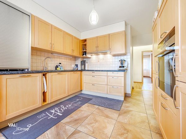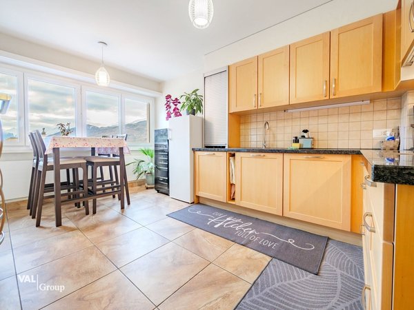 Ce logement lumineux et bien entretenu comprend un séjour agréable, une cuisine fonctionnelle, trois chambres, ainsi qu'une salle de bain et un WC séparé. Il est chauffé par un système au mazout avec radiateurs. Un véritable atout est la cheminée dans le salon et le balcon accessible depuis le salon ou la cuisine.