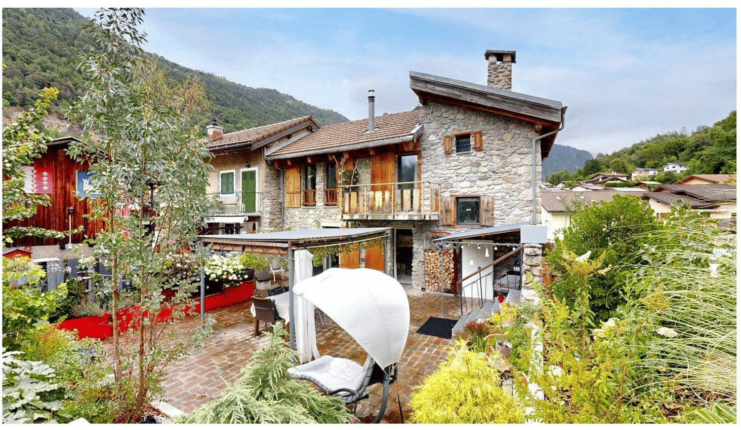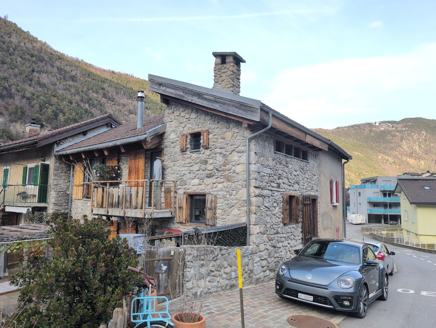 Aux Valettes, sur la commune de Bovernier, à 5 minutes en voiture de Martigny, une petite maison de village en pierre sèche, 3 pièces 1/2, rénovée en 2020, où il fait bon vivre !