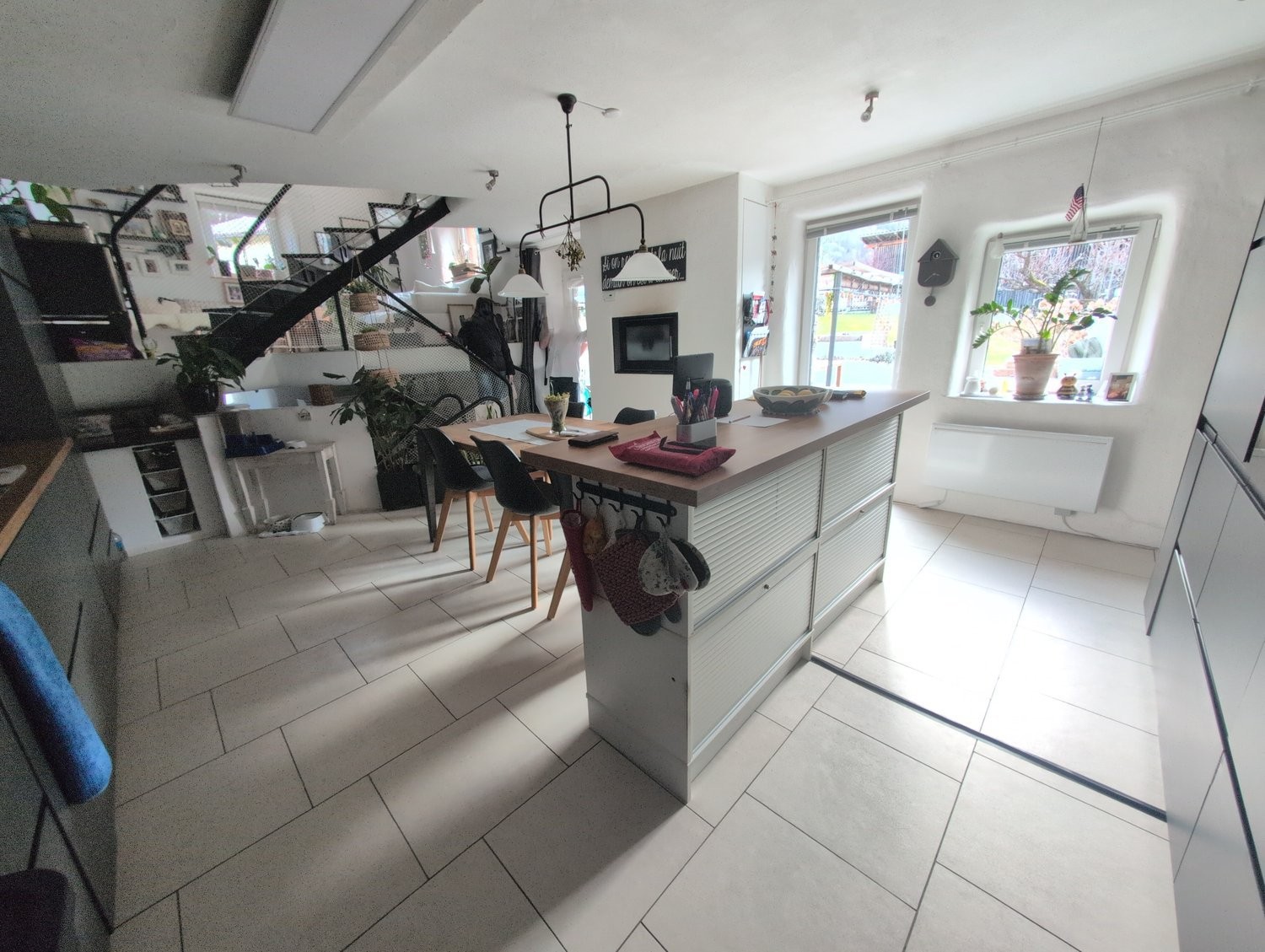 Grande cuisine lumineuse ouverte sur tout l'étage (environ 25 m2)