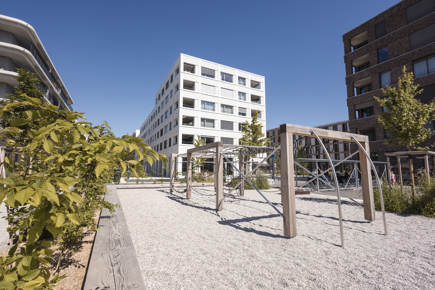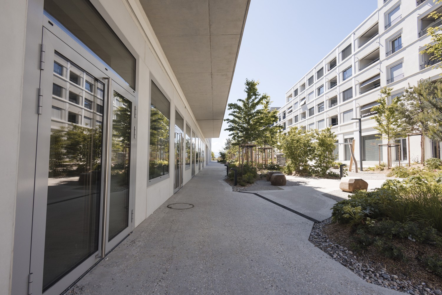 • Quartier moderne et équipé avec panneaux photovoltaïques, bornes de recharge pour véhicule électrique, emplacement Mobility Car Sharing et station PubliBike