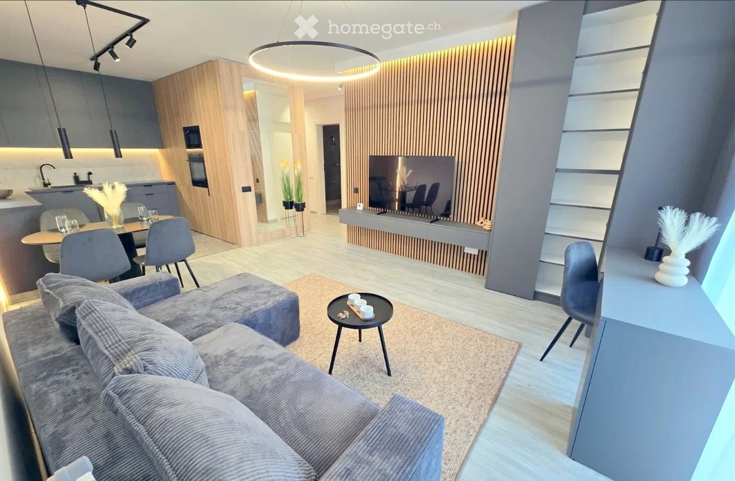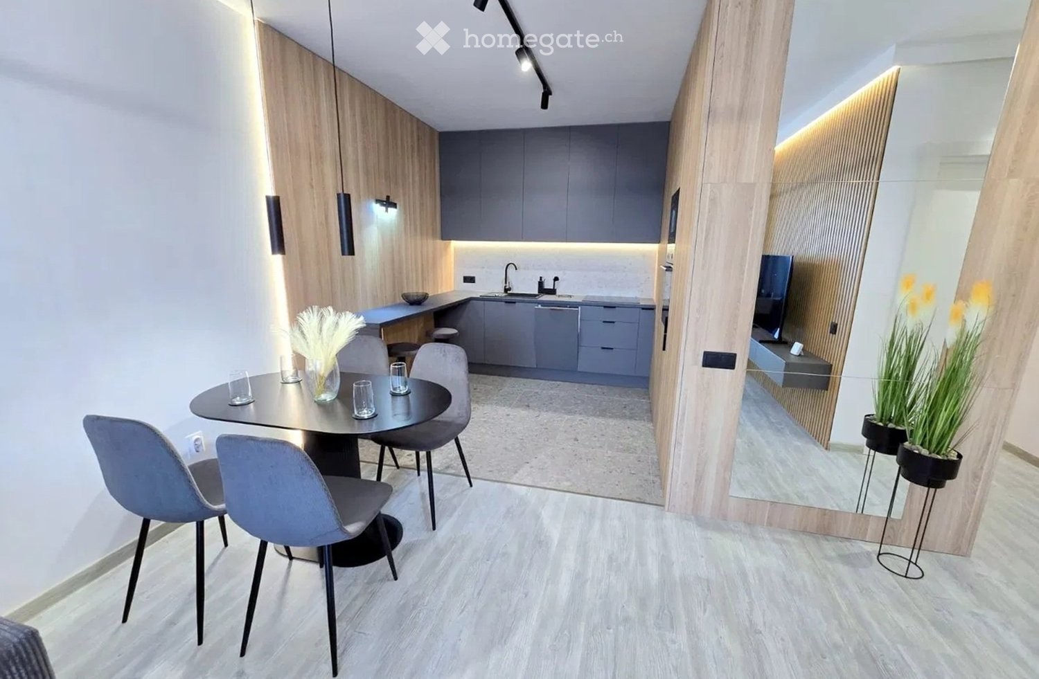Die Wohnung verfügt über zwei Schlafzimmer mit Doppelbetten und einen offenen Wohn-/Essbereich mit Küche. Balkon. Nebenkosten inklusive.