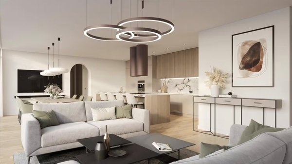 - Grande pièce de vie ouverte avec cuisine