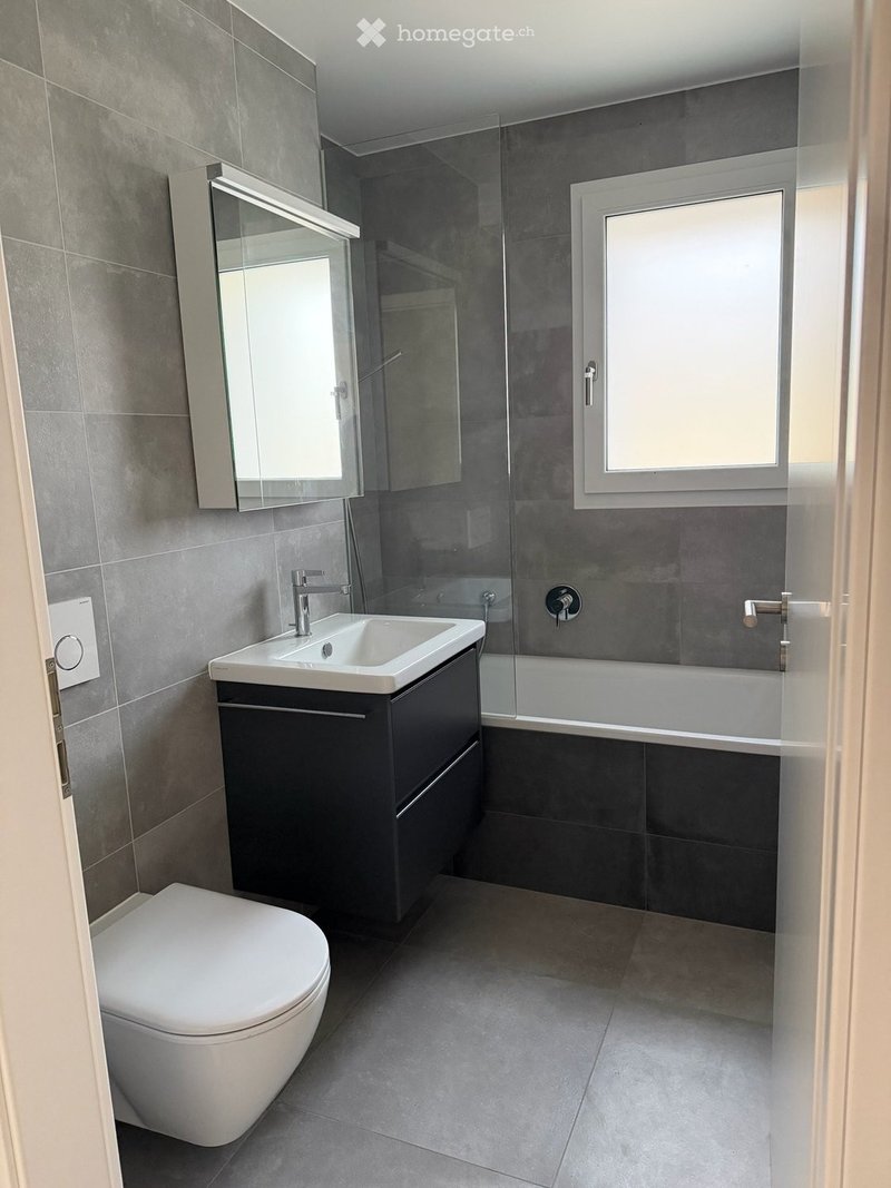 A louer, lumineux appartement rénové de 3,5 pièces au 2ème étage. Cuisine entièrement agencée, grande terrasse avec vue et armoires de rangement. Immeuble avec ascenseur, buanderie et local à vélos communs.