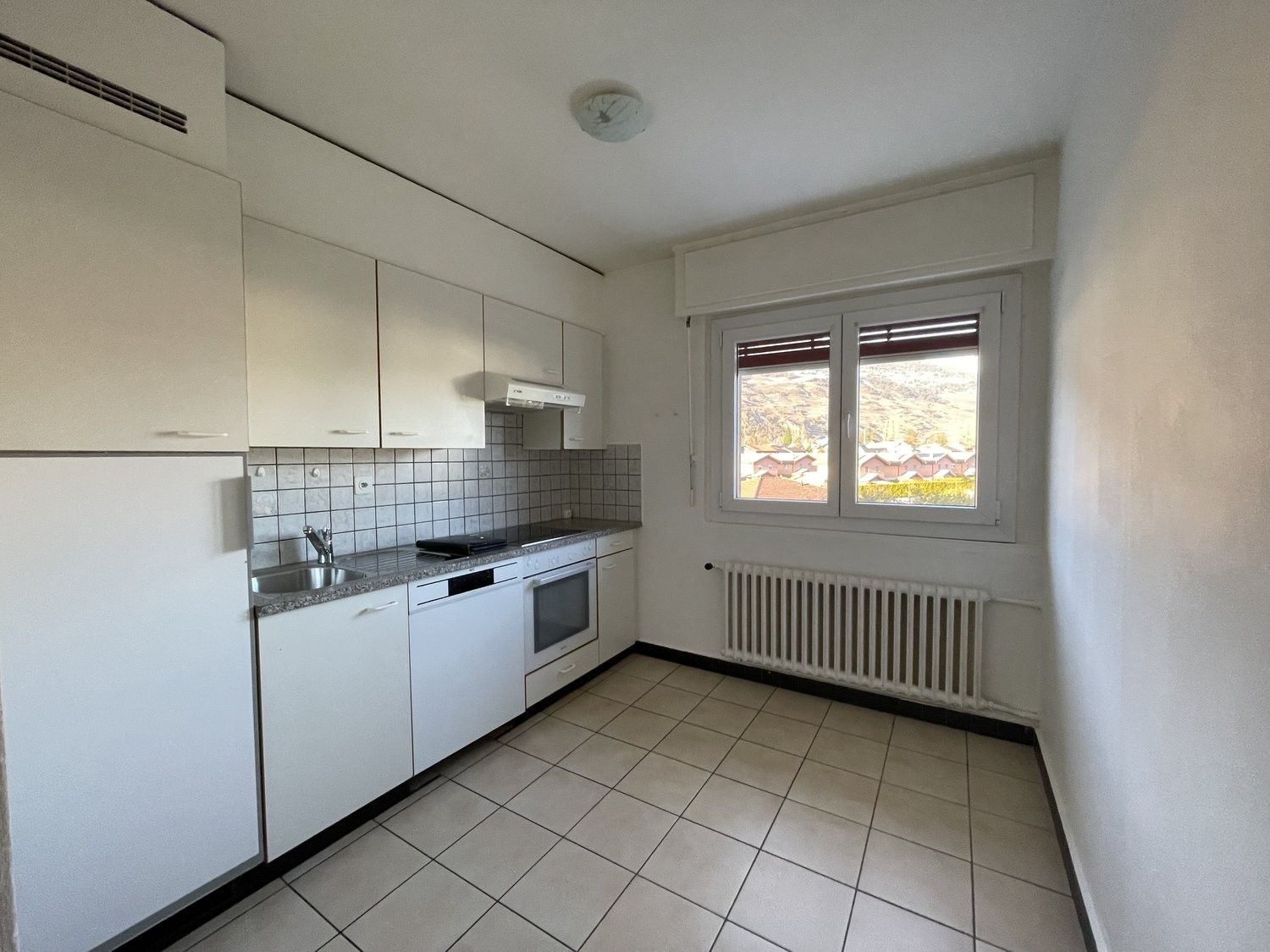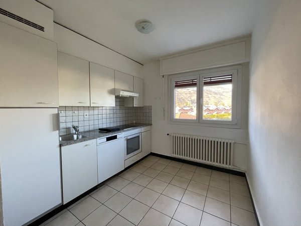 L'immeuble se situe dans un quartier calme et proche de l'école primaire. *Dans l'appartement, vous trouvez : - Hall d'entrée en carrelage - Cuisine agencée ouverte avec lave-vaisselle - Séjour, revêtement carrelage - 2 chambres, revêtement carrelage - Salle de bains avec baignoire - Petit local de rangement - Balcon - Cave Possibilité de louer une place de parc extérieure à CHF 25.00/mois.* **