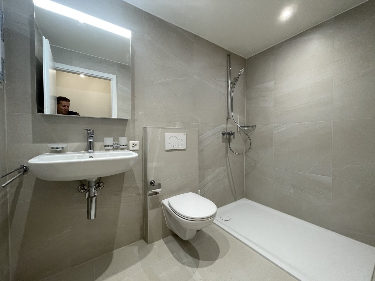 Une salle de douche avec WC.