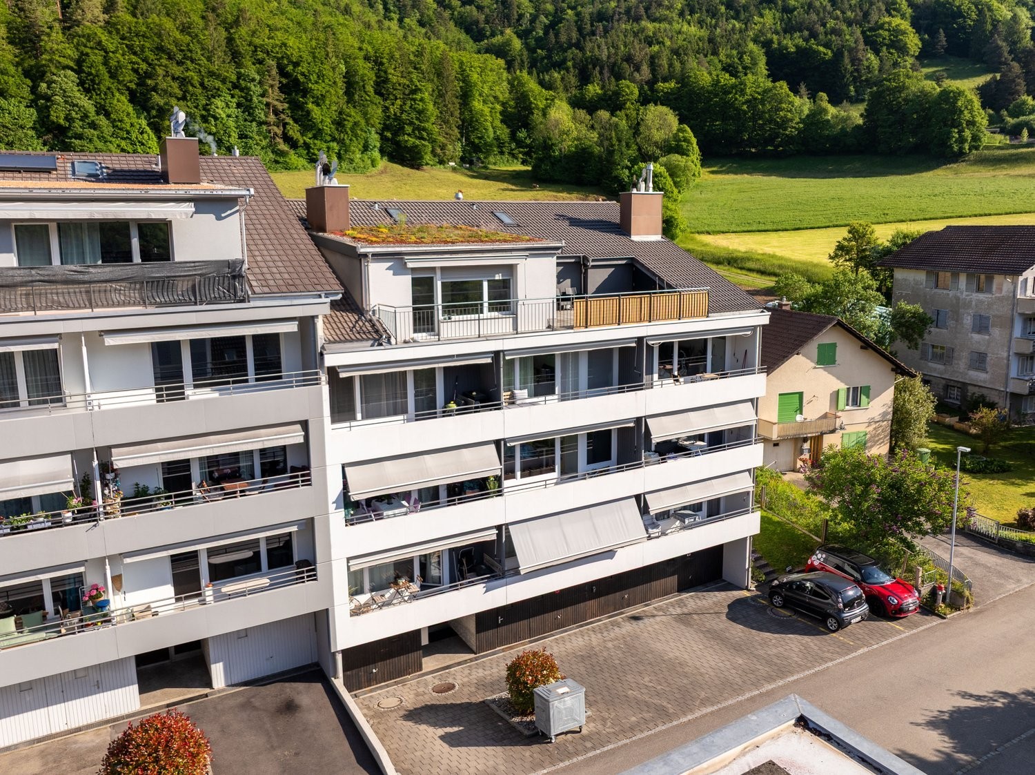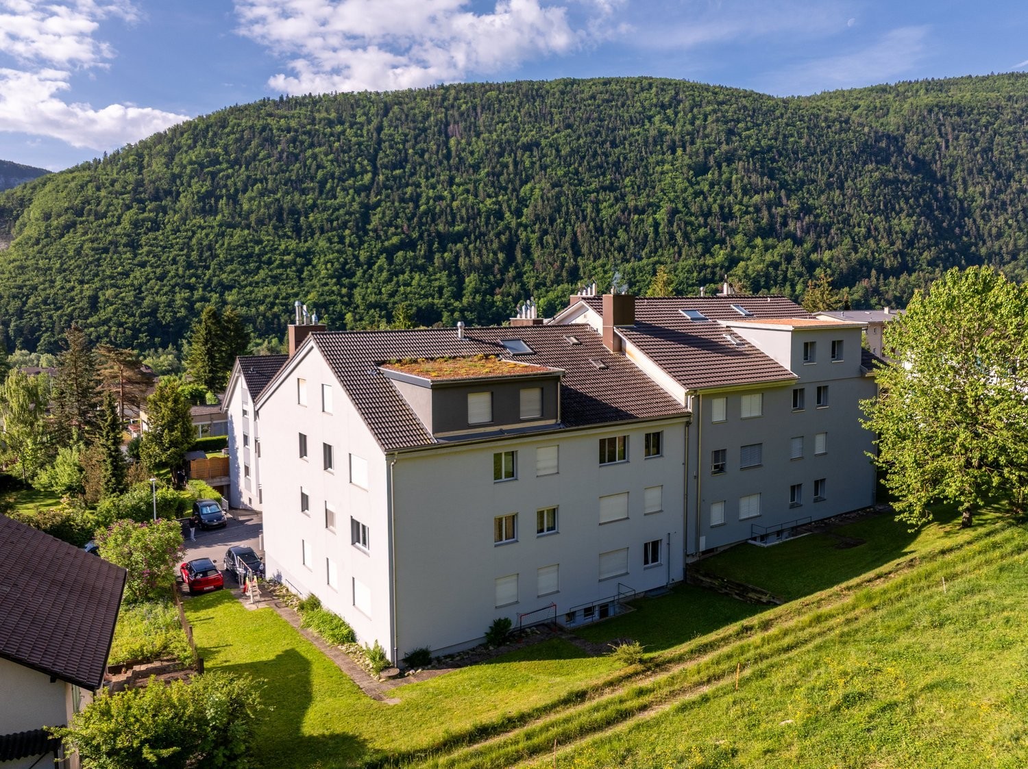 Sur une pente sud calme et ensoleillée à la Rue des Tilles 24 Péry, nous louons un appartement attique moderne de