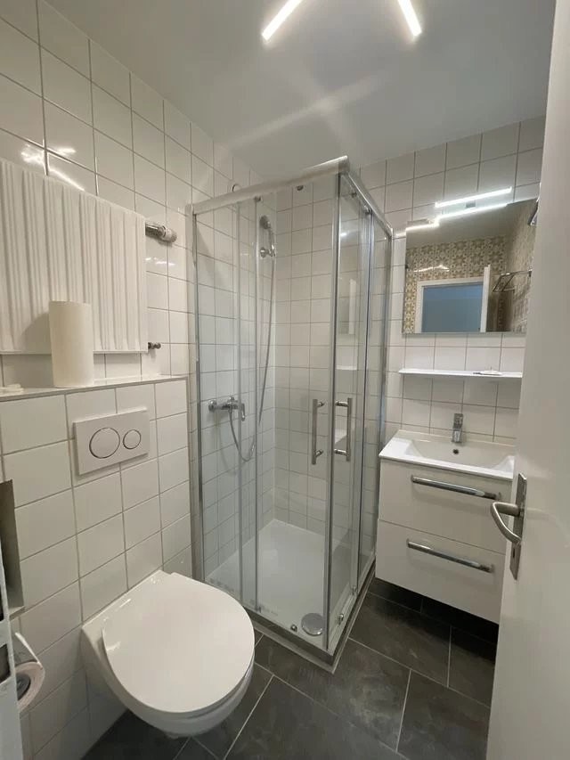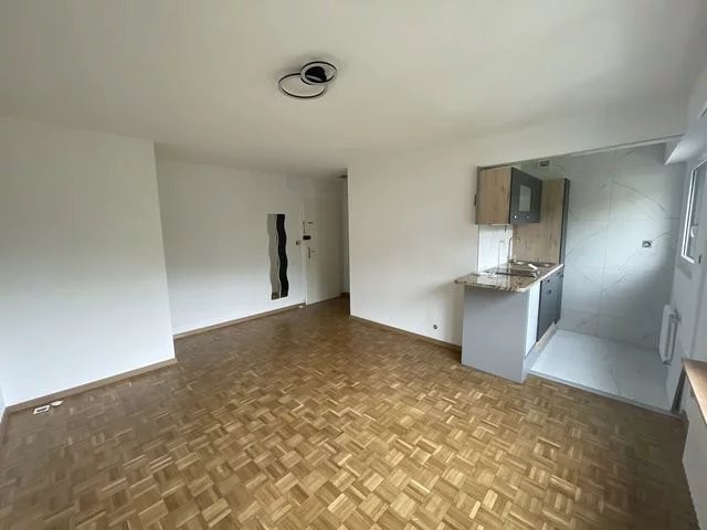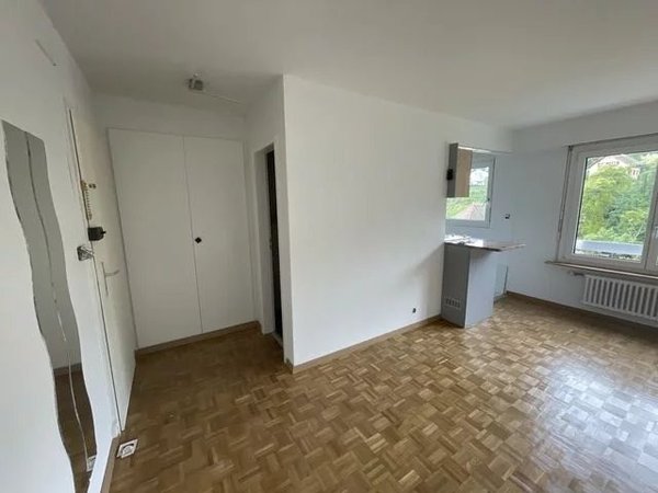 Studio au 6ème étage comprenant la pièce à vivre, une cuisine équipée et une salle de bains.
