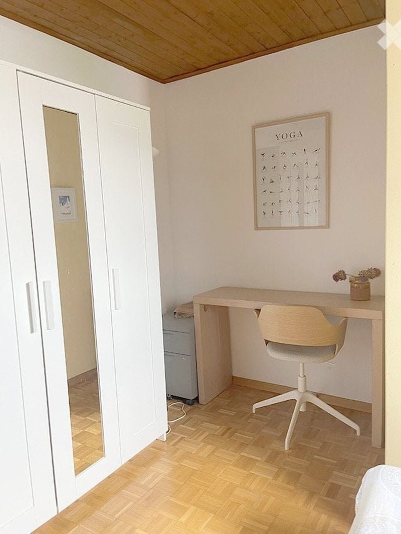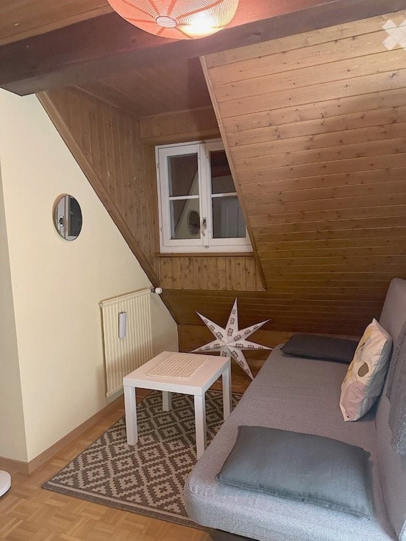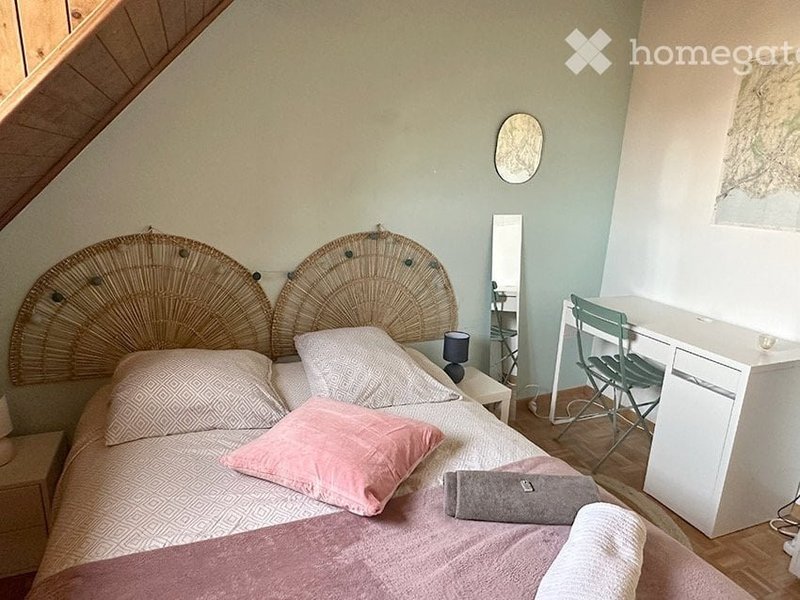 Nous sommes un couple ( 50/60 ans) calme, sportif, ouvert ( + notre chat ) et nous accueillons un.e étudiant.e ou un.e stagiaire pour une durée déterminéeà l'étage de notre duplex au coeur de la vieille ville de Vevey. A 1 min du lac et 5 min à pieds de la gare, nous mettons à disposition tout l'étage : 1 chambre avec lit de 140 + bureau, 1 autre pièce avec canapé table basse et armoire.Une sdb et wc privatifs ainsi qu'un espace mezzanine complètent ce lieu.