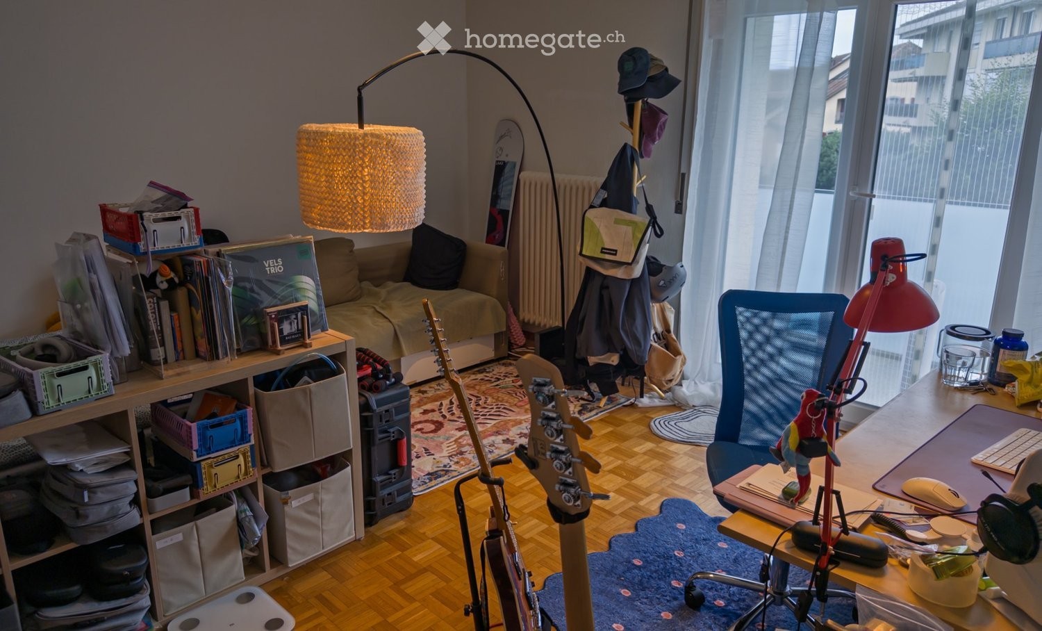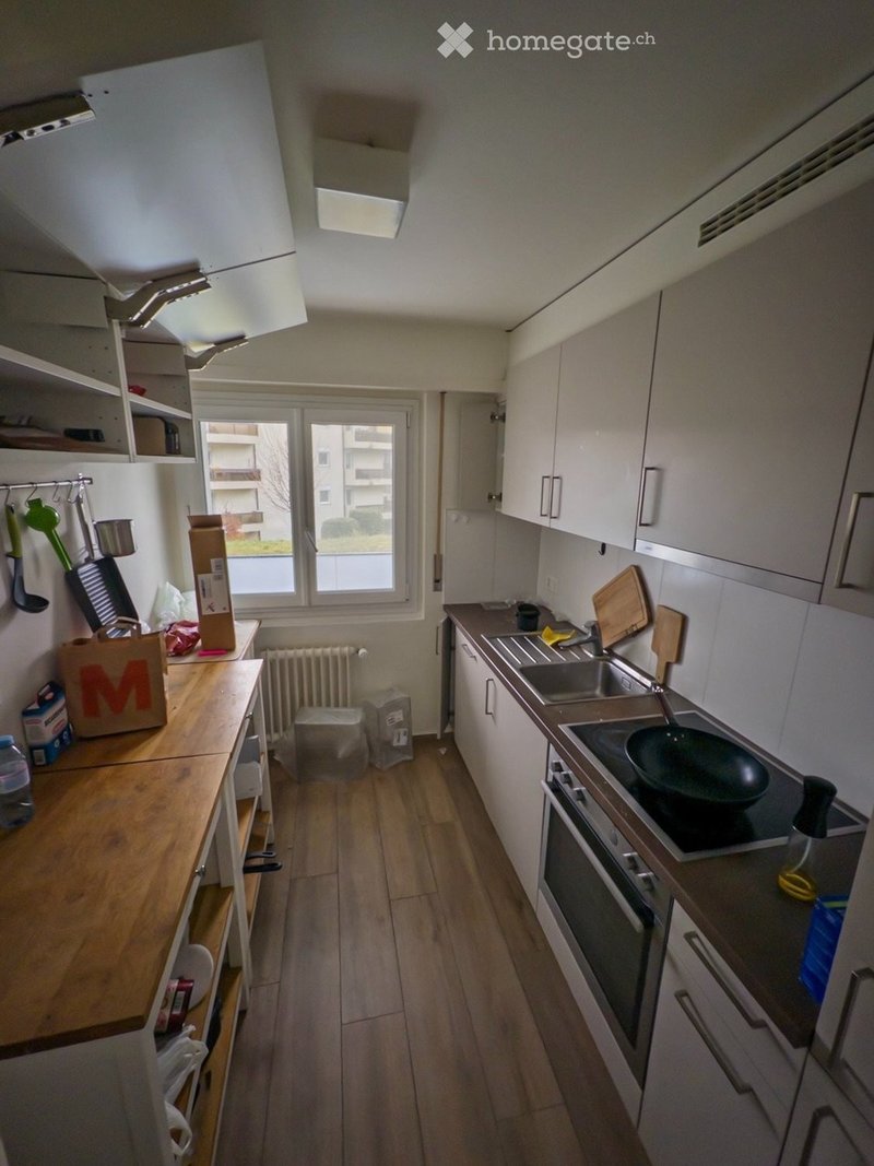 It's an apartment (3.5 pieces, 2nd floor) in a calm neighborhood, walking distance to the Parc du Débarcadère and the EPFL campus. The bedrooms are > 8 m² each, with balcony in addition. The images only show parts of the apartment. They are in an apartment with: