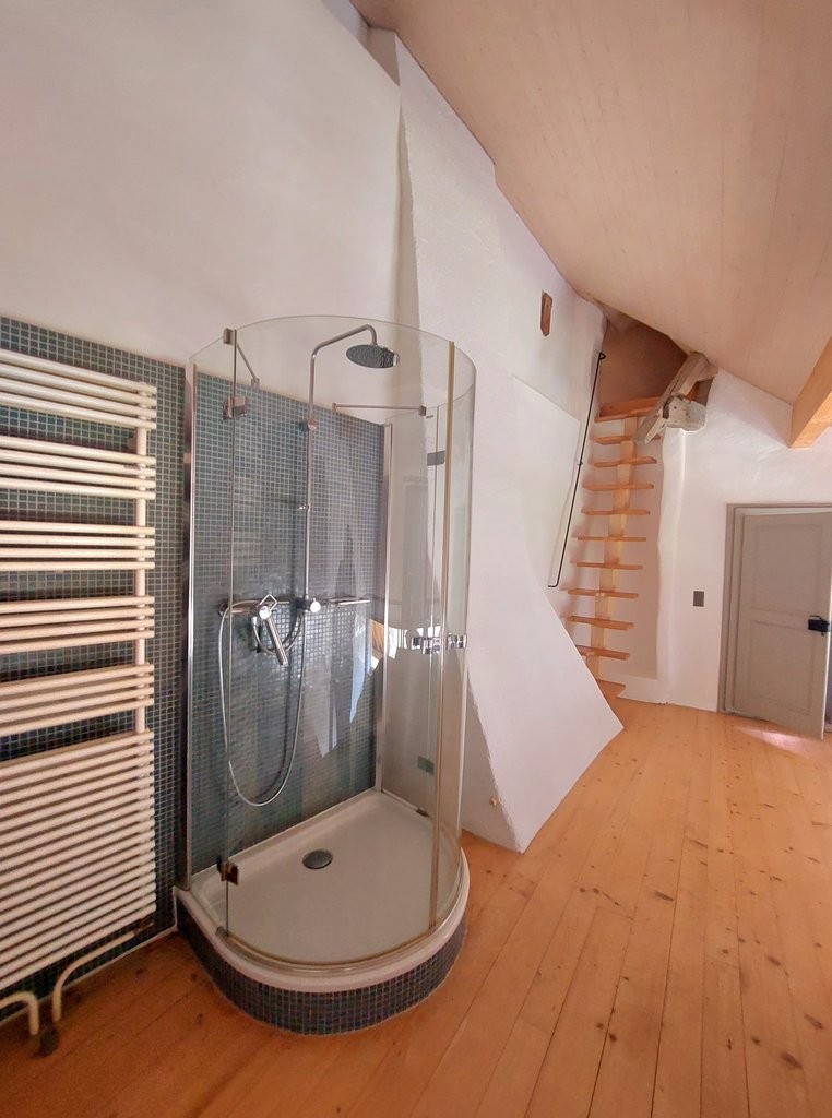 A l'étage, une salle-de-bain en coursive, avec cabine de douche, baignoire,