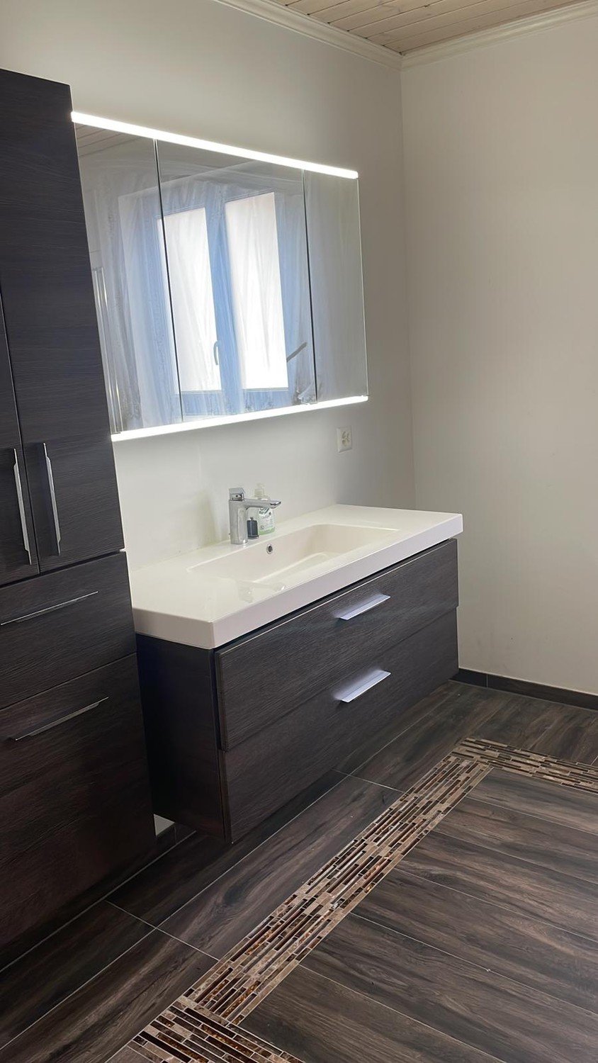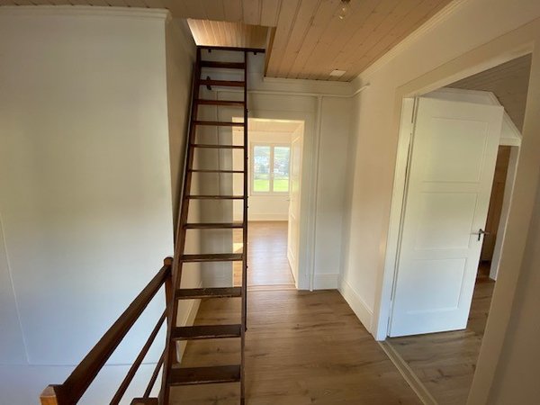 Sa surface habitable d’environ 120 m2 est idéalement répartie sur deux niveaux, avec un vaste espace supplémentaire dans les combles. Rez-de-chaussée :