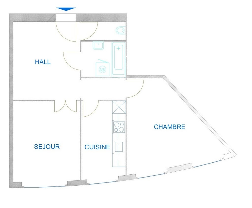 Grand hall d'entrée, une très belle cuisine entièrement équipée et aménagée, séjour très lumineux avec balcon, une chambre à coucher avec balcon également.