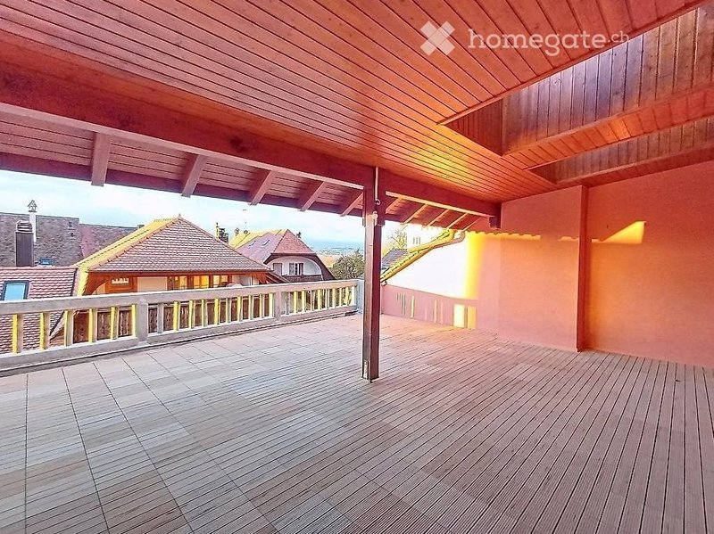 Maison de ville avec toit terrasse atypique de 40m2, située au coeur d'Avenches, entièrement rénovée de 5.5 pièces sur trois étages allie charme de l'ancien et confort moderne. Vous serez séduit par ses espaces extérieurs. L'intérieur conserve le cachet historique de la bâtisse (pierres apparentes, corniches, moulures) tout en offrant des équipements contemporains.