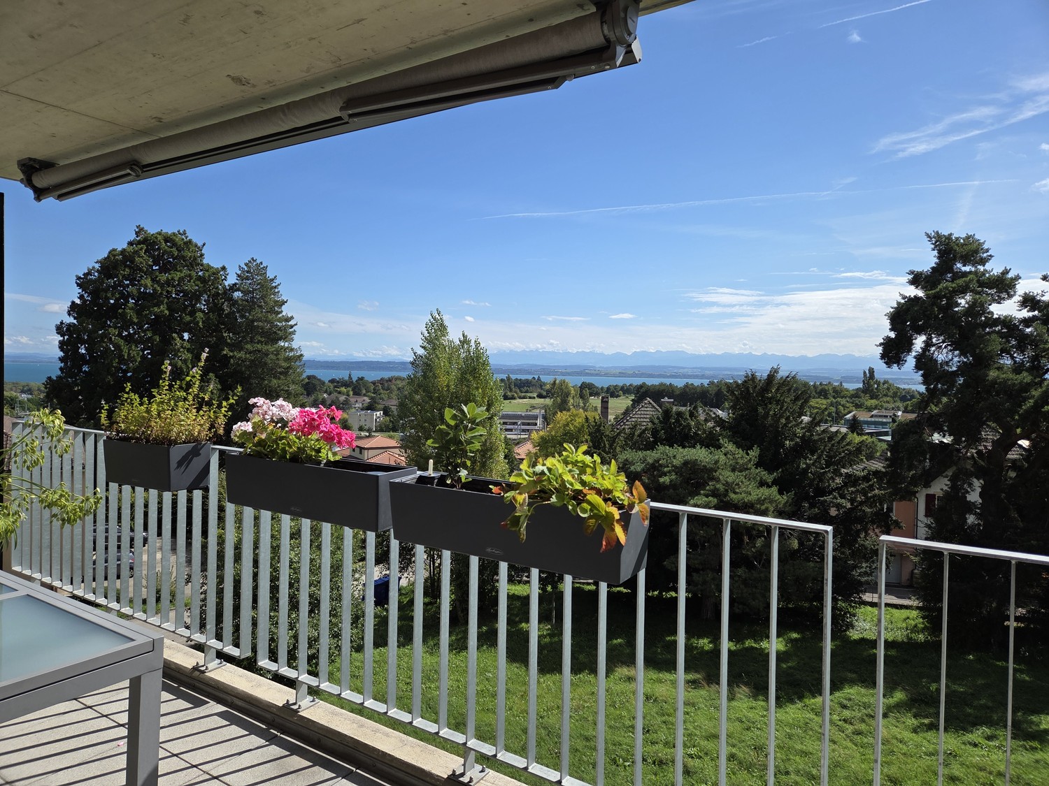 Appartement lumineux de 3 pièces à Bôle d'une surface de 69m2 avec vue sur le lac de Neuchâtel et le Alpes.