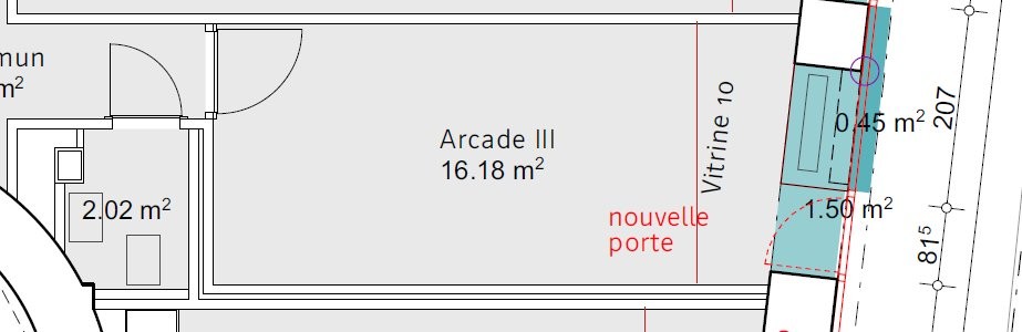 L'arcade moderne se compose comme suit : - Spacieuse surface de vente - WC et lavabo commun - Porte avec accès aux parties communes de l'immeuble