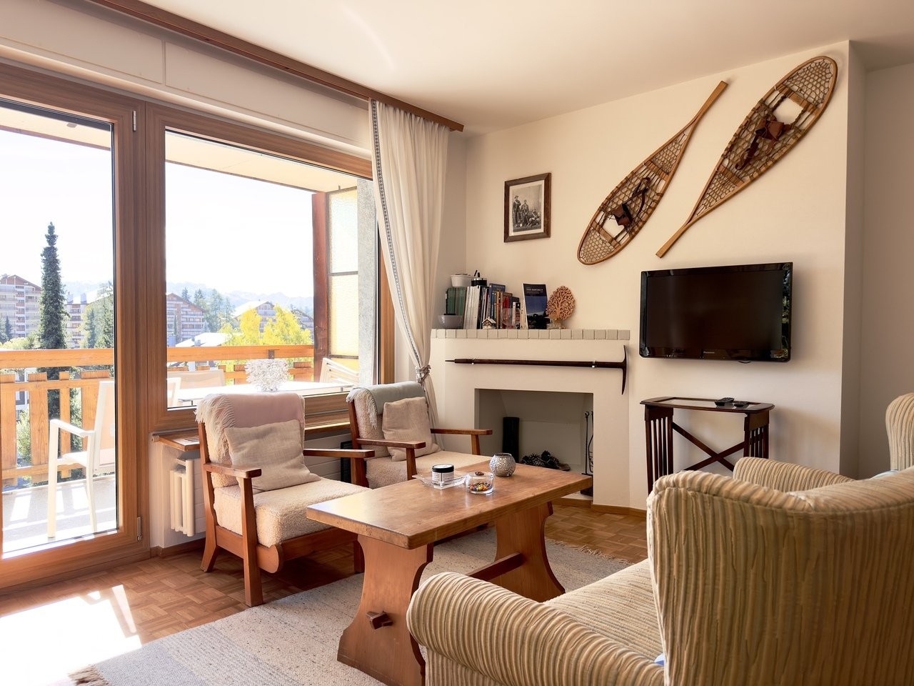 L'appartement offre une superbe vue plein sud sur les montagnes, avec un ensoleillement optimal tout au long de la journée -- un cadre parfait pour des vacances en famille.