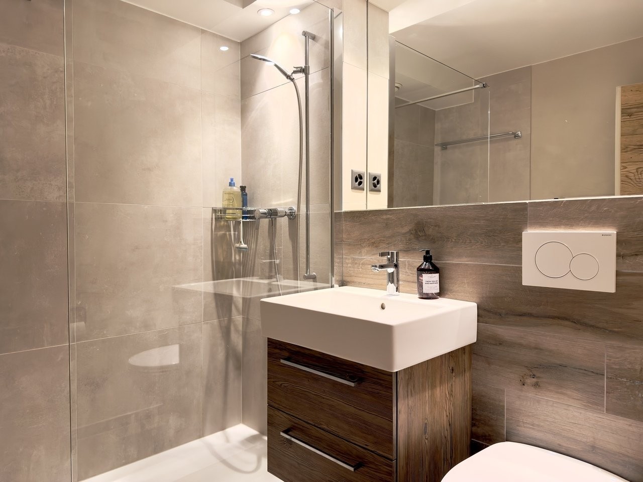 A shower room with w.c. et lavabo;