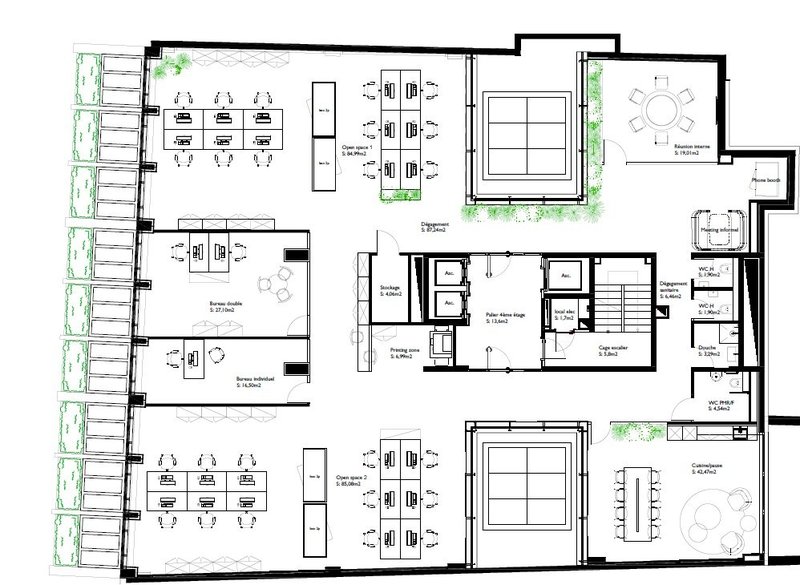 Plateaux modulables de 398–453 m²