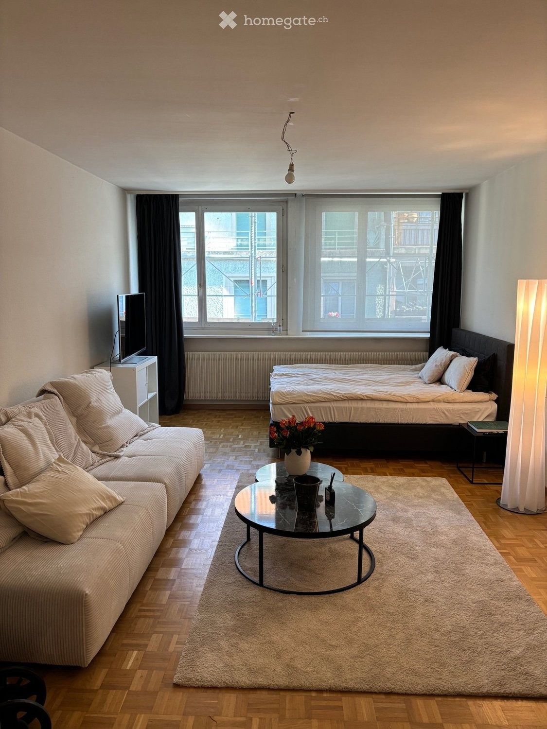 Loyer 1800 CHF/mois et 100 CHF de charges.