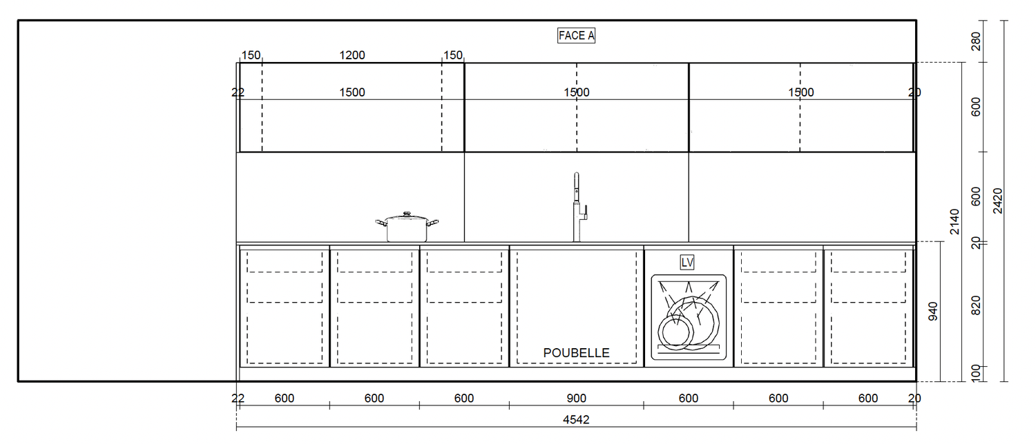 - La cuisine est entièrement équipée et dispose d'un plan de travail de 4,5 mètres ainsi que de nombreux rangements.