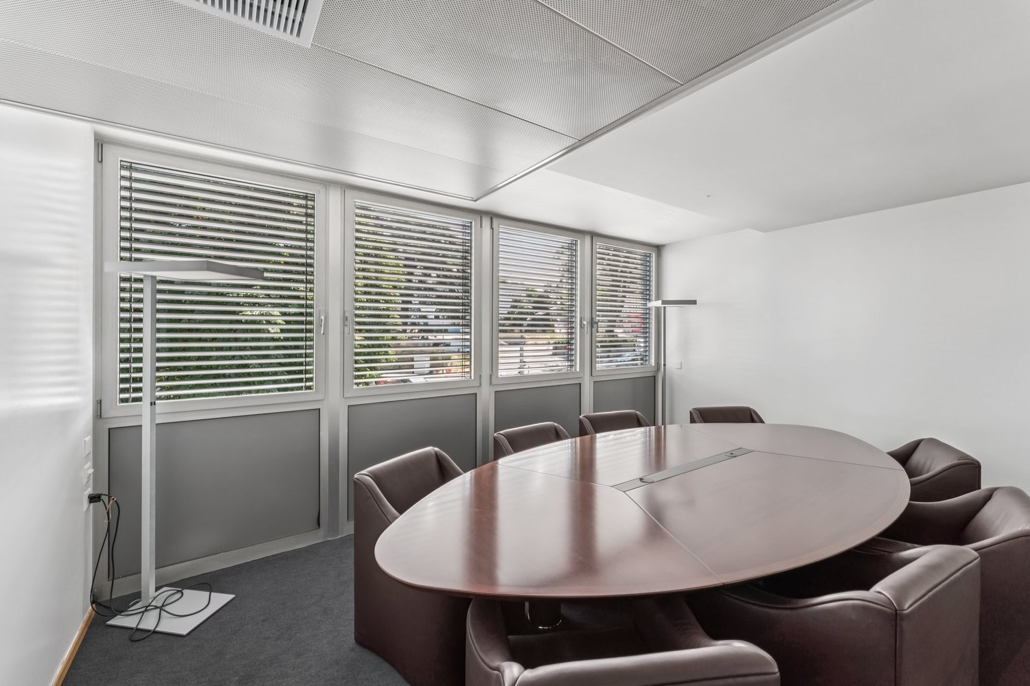 - Aménagement de base : réception, open-space, bureaux et salles de conférence