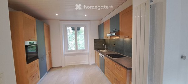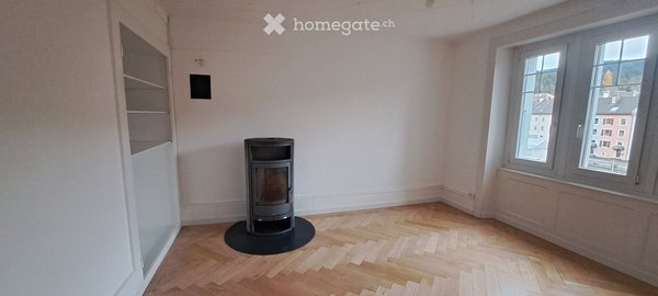Cuisine agencée, 2 chambres, 1 salon avec poêle, 1 WC/douche, coin terrasse à disposition.
